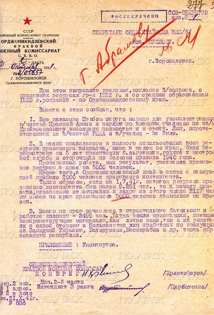 В период Великой Отечественной войны краевой военком полковник Николай Иванович Христофоров обеспечивал твердое руководство и четкую работу военкоматов края по своевременному и качественному выполнению ими мобилизационных мероприятий. После освобождения края он умело и оперативно расставлял кадры, обеспечил в краткий срок восстановление военкоматов и руководство их работой по проведению призыва военнообязанных и восстановлению воинского учета.