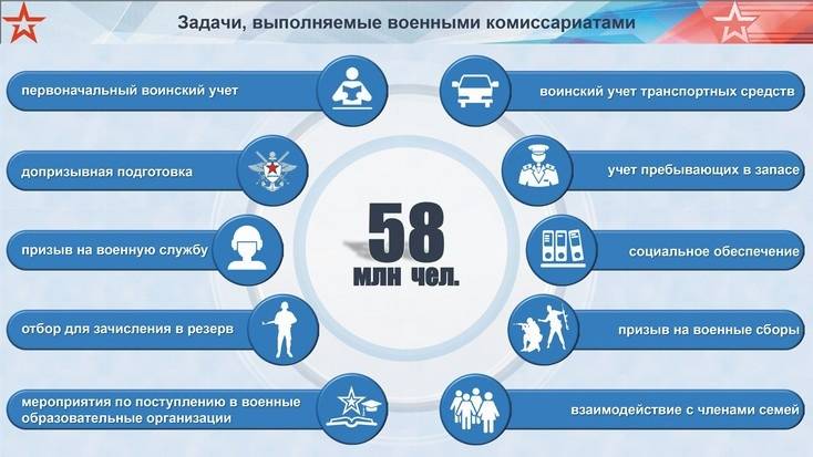 В годы Гражданской войны и иностранной интервенции военные комиссариаты проделали большую работу по набору в Красную Армию добровольцев, изысканию призывных ресурсов, организации учета годных к военной службе контингентов, подготовке военно-учебных резервов.