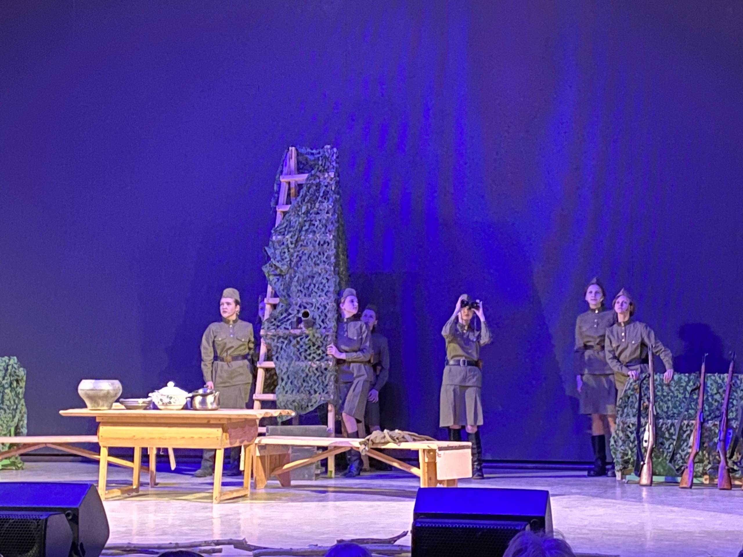 В канун Дня Победы юные артисты театра показали историю молодых зенитчиц, отважно защищавших нашу Родину. Актеры смогли дать зрителю почувствовать те мечты и надежды, которыми жили девушки, но их жизнь оборвала война.