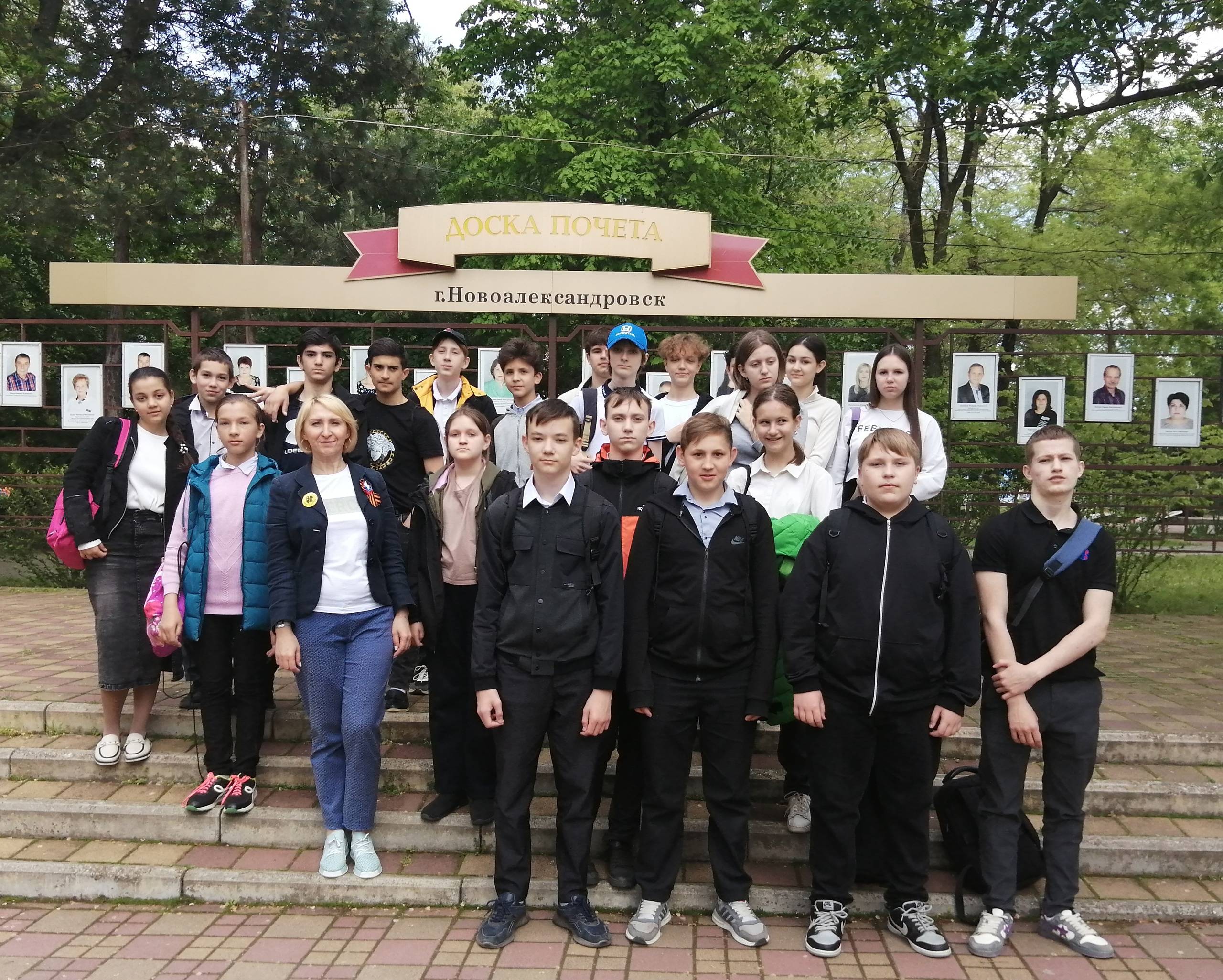 12 мая 2023 года активисты Регионального отделения Российского военно-исторического общества в Ставропольском крае (РО РВИО СК), сотрудники Новоалександровского районного историко-краеведческого музея Герасимова М.Ф. и Скрипникова Л.А. провели пешеходную экскурсию по Аллее Славы города и Новоалександровского района.