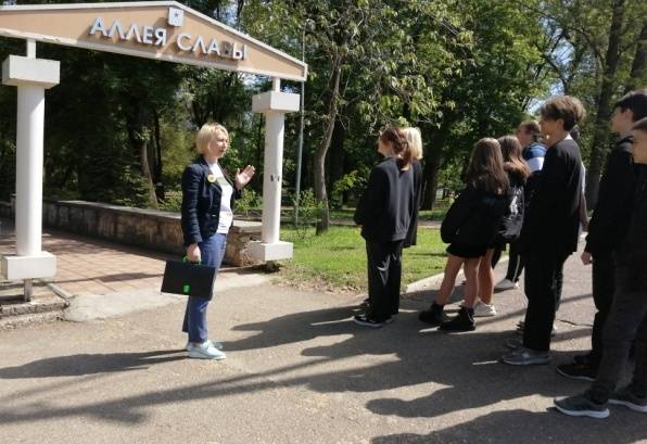 Школьники познакомились с историей создания Аллеи Славы, с именами, биографиями и заслугами тех, кто размещен на ней, посмотрели архивные фотографии середины XX века.