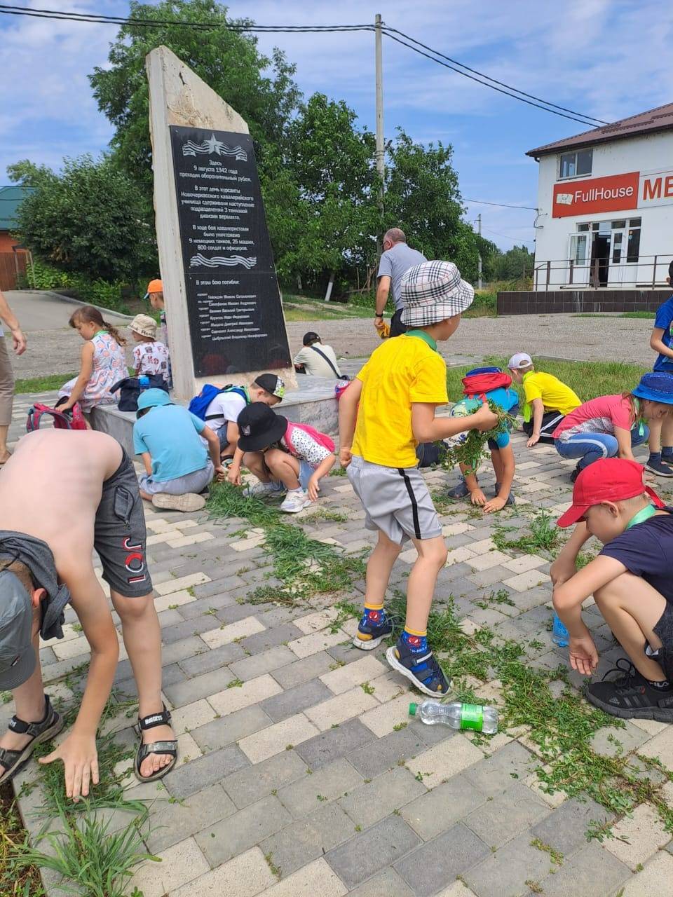 Также по инициативе Михаила Борисовича был организован субботник у памятника курсантам Новочеркасского кавалерийского училища, в котором приняли участие воспитанники пришкольного лагеря "Берёзка" МБОУ СОШ №5 г. Минеральные Воды под руководством педагогов Шейко О.В. и Усовой Т.И. Дети не только привели в порядок территорию мемориала, но и узнали историю героев, которым он посвящён: именно здесь 9 августа 1942 г. шли ожесточённые бои, в ходе которых курсанты и командный состав Новочеркасского кавалерийского училища всеми силами пытались удержать оборонительный рубеж и не допустить противника к Минеральным Водам. Им удалось уничтожить 800 вражеских солдат и офицеров, подбить 9 танков и 25 машин с пехотой.