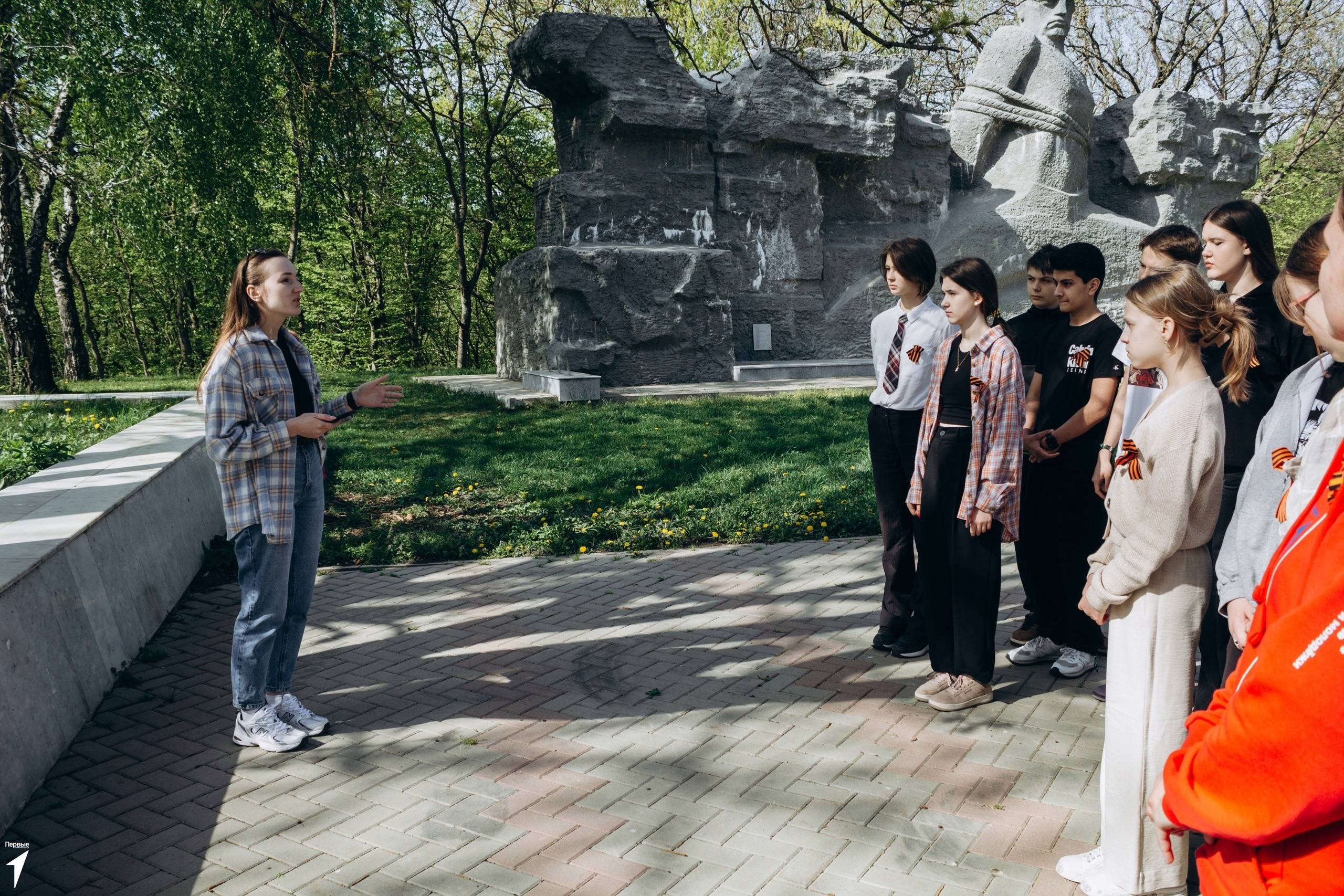 В этот день представители «Движения Первых» организовали уборку на мемориале, а по завершении экскурсии почтили память погибших горожан минутой молчания и возложили цветы.
