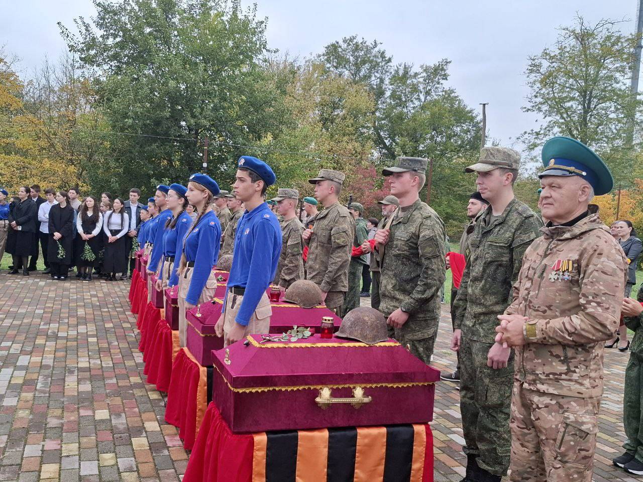 Перезахоронение состоялось на воинском мемориале, где собрались представители органов власти, делегация из Республики Северная Осетия – Алания, члены РО РВИО СК, школьники и местные жители, чтобы отдать последние почести защитникам Отечества. После траурной панихиды останки бойцов были преданы земле под залпы почётного караула. Вместе с координатором краевого автопробега «Эх, путь-дорожка фронтовая!» В.И. Лозовым, председателем комитета Думы по промышленности, энергетике, строительству и жилищно-коммунальному хозяйству, ветераном боевых действий, кавалером ордена Мужества, членом РО РВИО СК, развернули увеличенную копию Знамени Победы. Завершилась церемония возложением венков и цветов к братской могиле.