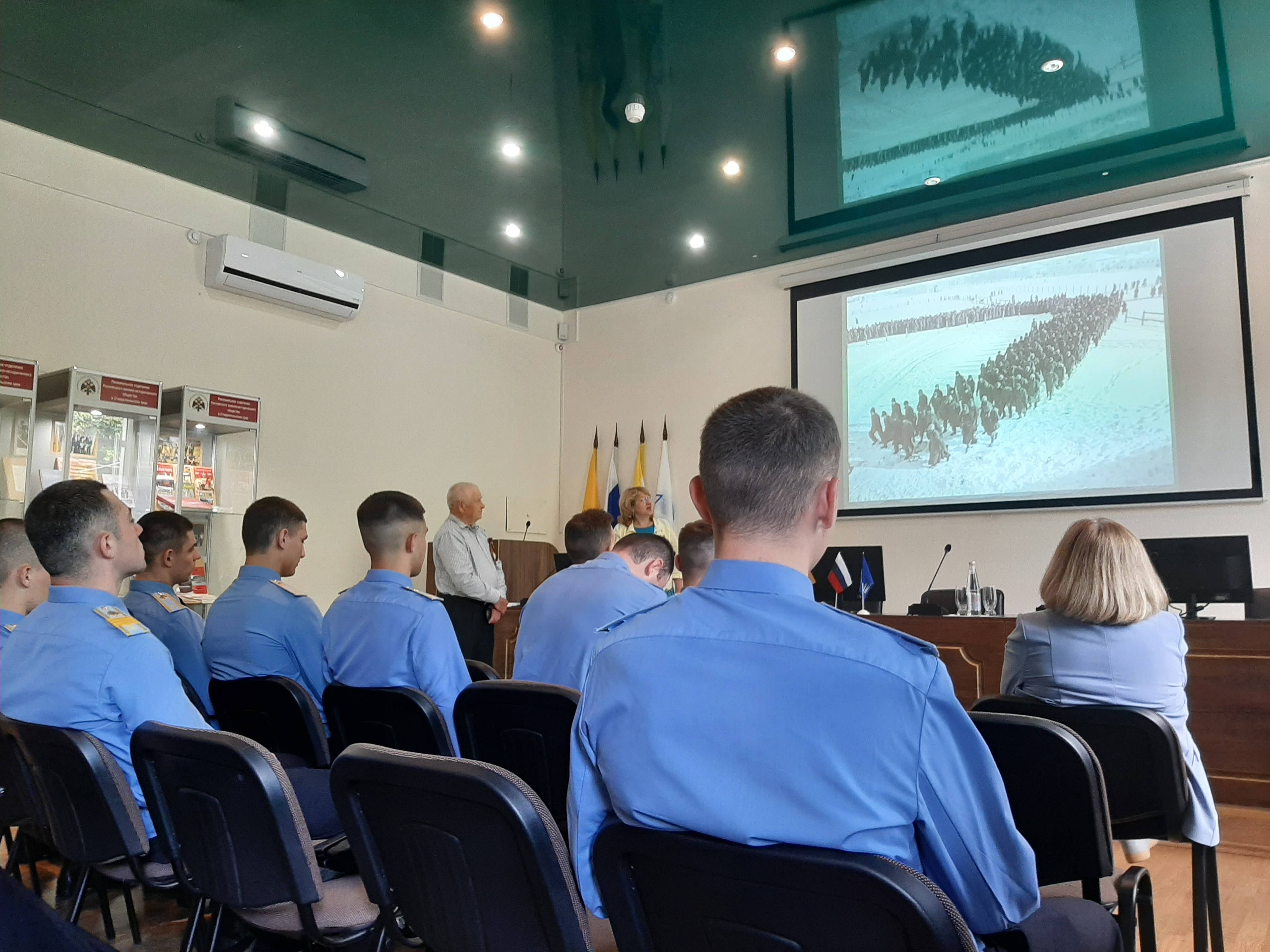 Ведущими лекторами выступили Судавцов Н.Д., д.и.н., Почетный профессор Северо-Кавказского федерального университета (СКФУ), главный научный сотрудник отдела военной истории и патриотической работы СГМЗ, один из учредителей РО РВИО СК, и Стрекалова Е.Н., к.и.н., доцент кафедры истории России СКФУ, старший научный сотрудник отдела военной истории и патриотической работы СГМЗ, член РО РВИО СК.