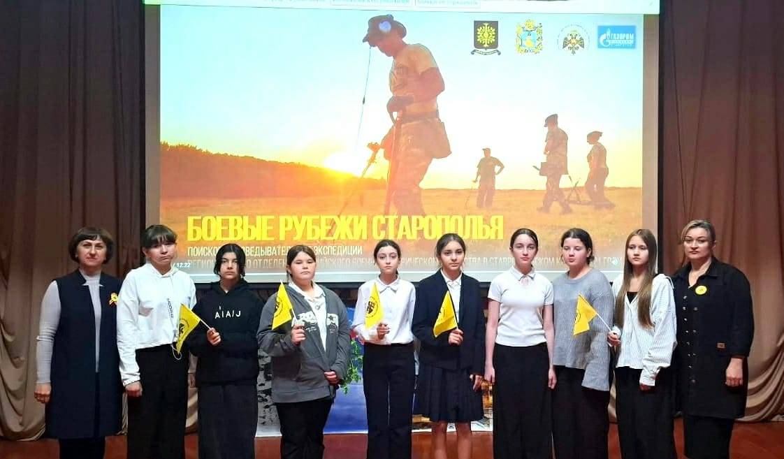 Так, 8 октября 2025 г. в Музее истории с. Родниковского (руководитель – Новак Н.Н., председатель Местного отделения РО РВИО СК в с. Родниковском) для учащихся МКОУ СОШ №9 (директор – Магомедова Ш.Т., член РО РВИО СК) состоялся исторический час «Битва за Кавказ. Голубая линия». Учащиеся погрузились в атмосферу военных лет, узнали о судьбах 10 односельчан-участников Битвы и посмотрели документальные видеоматериалы РО РВИО СК.