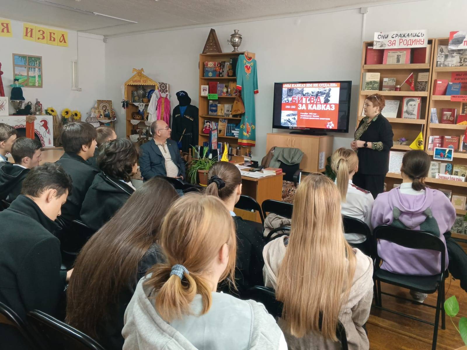 В Центре детско-юношеского туризма и экскурсий с. Арзгир (директор – Гончаренко О.Е., председатель Местного отделения РО РВИО СК в Арзгирском муниципальном округе) также состоялось мероприятие, посвящённое одной из ключевых страниц Великой Отечественной войны. Гости узнали о ключевых сражениях на перевалах Кавказа, обороне Новороссийска и операциях в районе Эльбруса и Туапсе. В завершение мероприятия все участники почтили память погибших советских воинов минутой молчания.