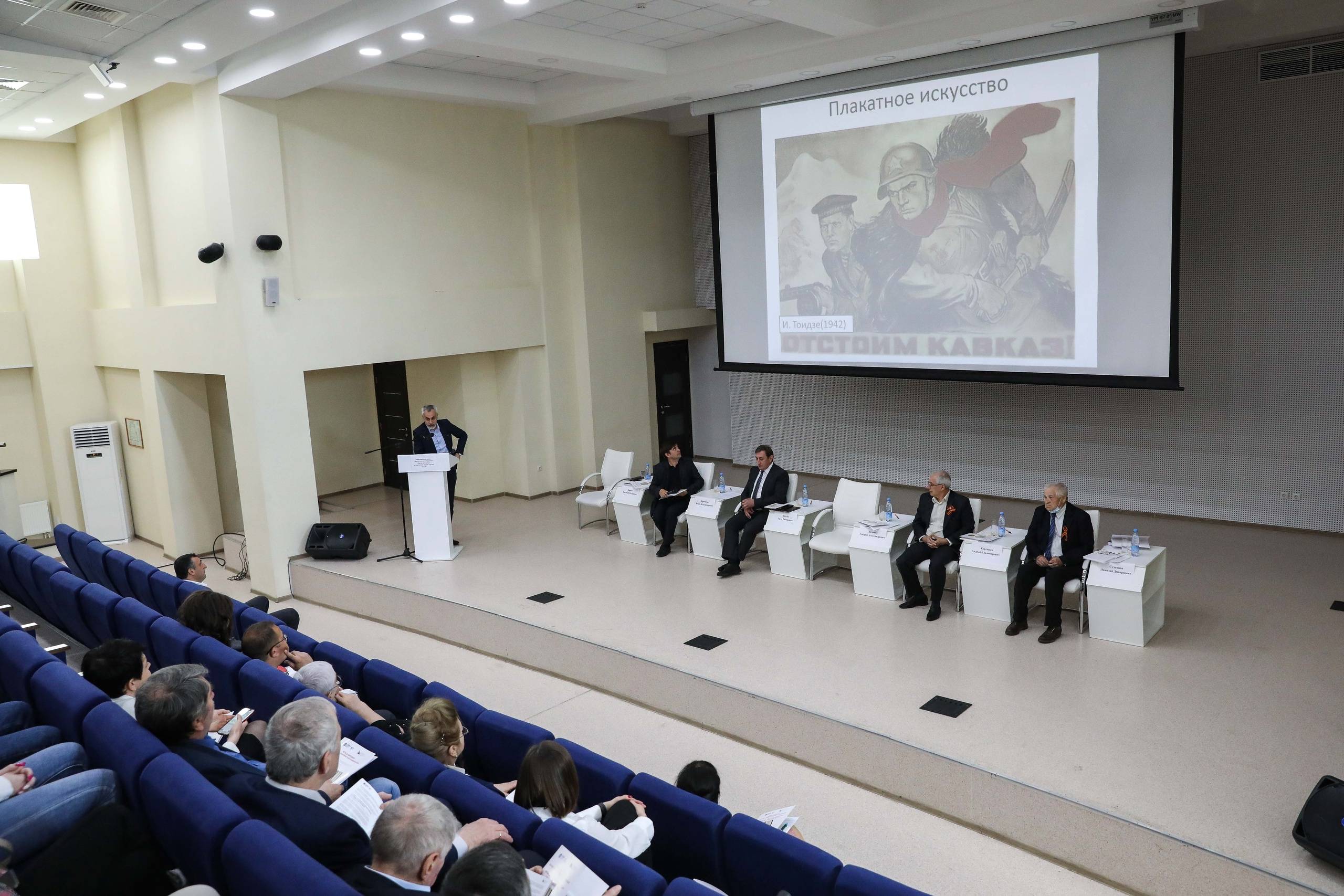 В рамках секции №1 «Вклад народов Кавказа в разгром германской армии и ее союзников на Северном Кавказе» (руководители секции – Карташев А.В. и Судавцов Н.Д.) Каменева Г.Н., к.и.н., зав. отделом военной истории и патриотической работы СГМЗ, исполнительный директор РО РВИО СК, рассказала о вкладе ставропольцев в дело Великой Победы.