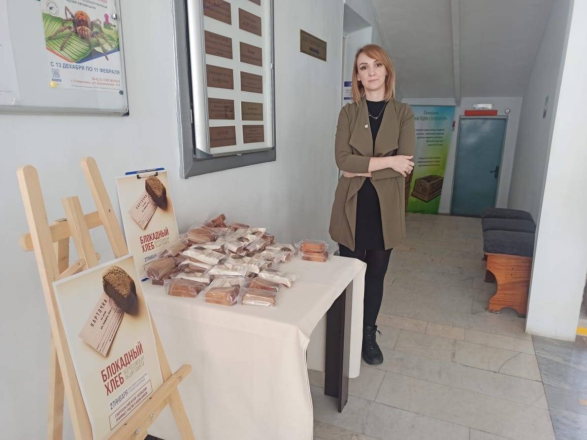 27 января 2024 г. сотрудники Отдела культурно-образовательной деятельности Ставропольского государственного музея-заповедника (СГЗМ) под руководством заведующей отдела – Е.В. Калабуховой, члена РО РВИО СК, провели в музее акцию «Блокадный хлеб» для посетителей и сотрудников музея.