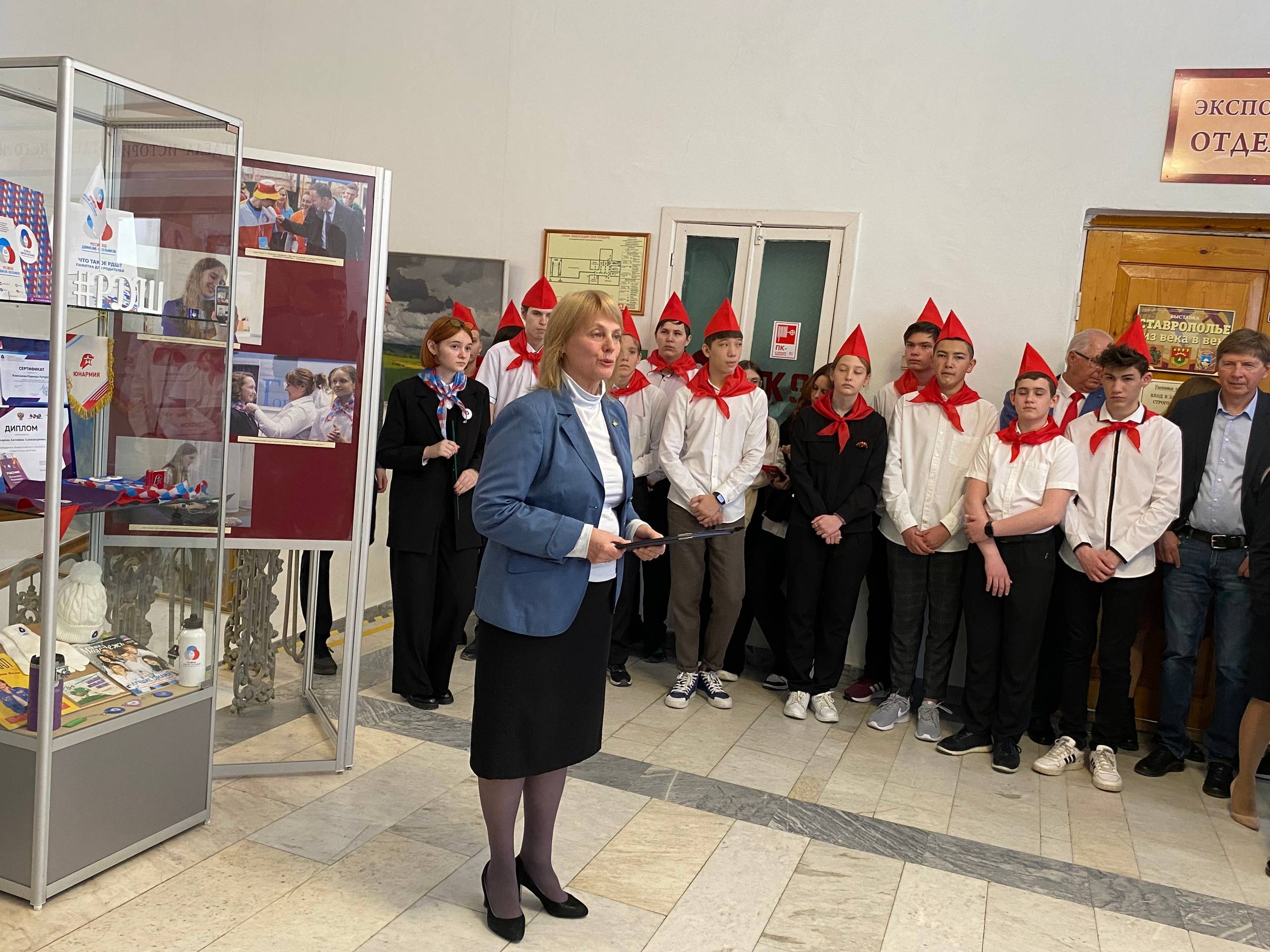 Макодзеба А.П. рассказала о значимости пионерии в советском обществе, роли данного социального института в формировании гражданской позиции и патриотического сознания населения, о подготовке данной экспозиции. Экскурсоводами выступили учащиеся школ г. Ставрополя. Они представили обзор истории пионерии СССР, героического участия пионеров в Великой Отечественной войне, развития движения в постсоветский период, преемственность пионерского движения – Российское Движение Школьников.