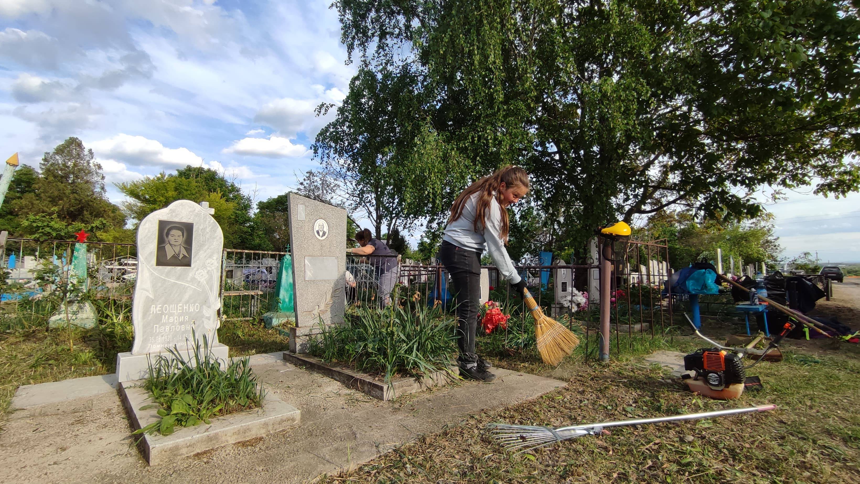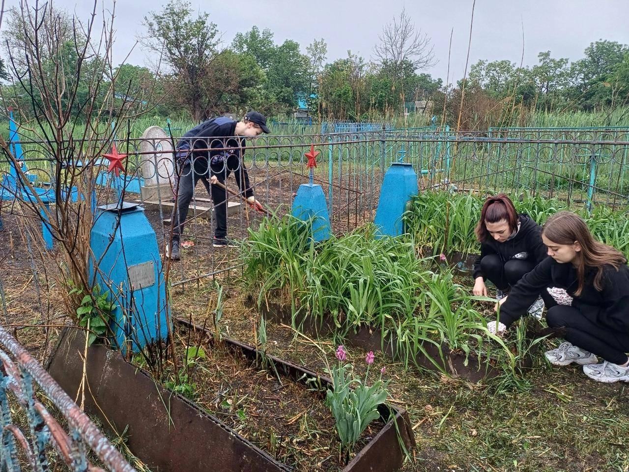 В с. Казьминском члены клуба «Юный патриот» РО РВИО СК под руководством Котова С.Н., учителя истории и обществознания, руководителя Центра музейной подготовки МБОУ СОШ №16 с. Казьминского, председателя Местного отделения РО РВИО СК в Кочубеевском муниципальном округе, и активисты волонтерской группы «Инициатива» под руководством Коломойцевой К.Е., учителя истории школы, члена РО РВИО СК, провели уборку на могилах ветеранов Великой Отечественной войны и труда в родном селе. Совместно с педагогами и председателем Совета ветеранов войны и труда с. Казьминского В.И. Ковшовым школьники выкосили траву, убрали мусор, покрасили памятники и ограды.