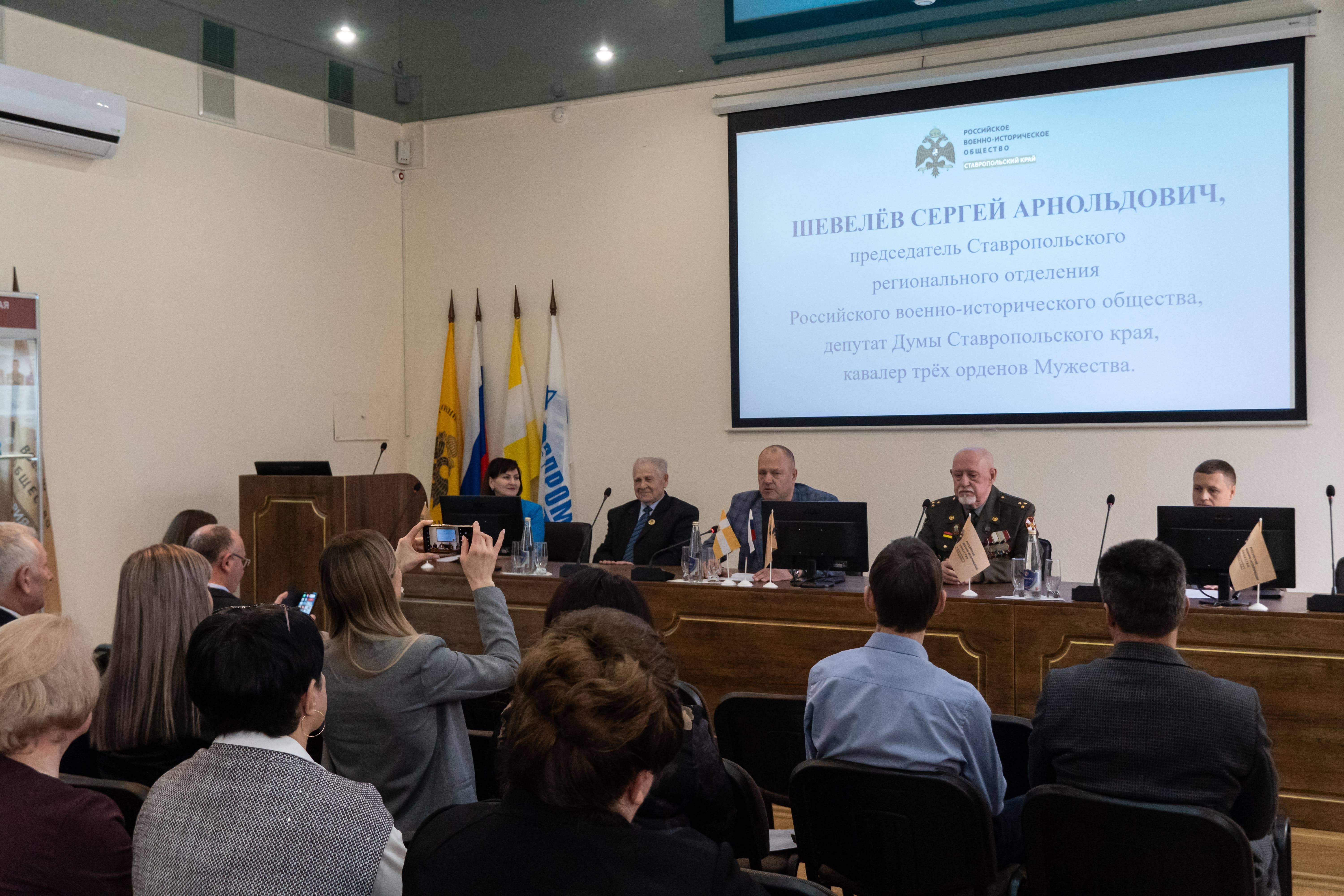 С приветственным словом к собравшимся обратились председатель РО РВИО СК Шевелёв С.А., депутат Думы Ставропольского края, кавалер трёх орденов Мужества, Почётный гражданин Ставропольского края, и исполнительный директор РО РВИО СК Каменева Г.Н., к.и.н., зав. отделом военной истории и патриотической работы Ставропольского государственного музея-заповедника (СГМЗ).