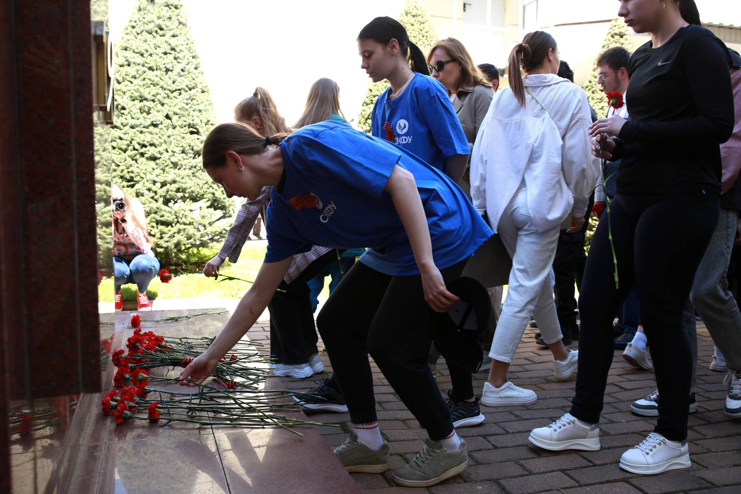 В завершении исторических чтений состоялся митинг у мемориала студентам и преподавателям – участникам Великой Отечественной войны. Участники возложили цветы и почтили память павших минутой молчания