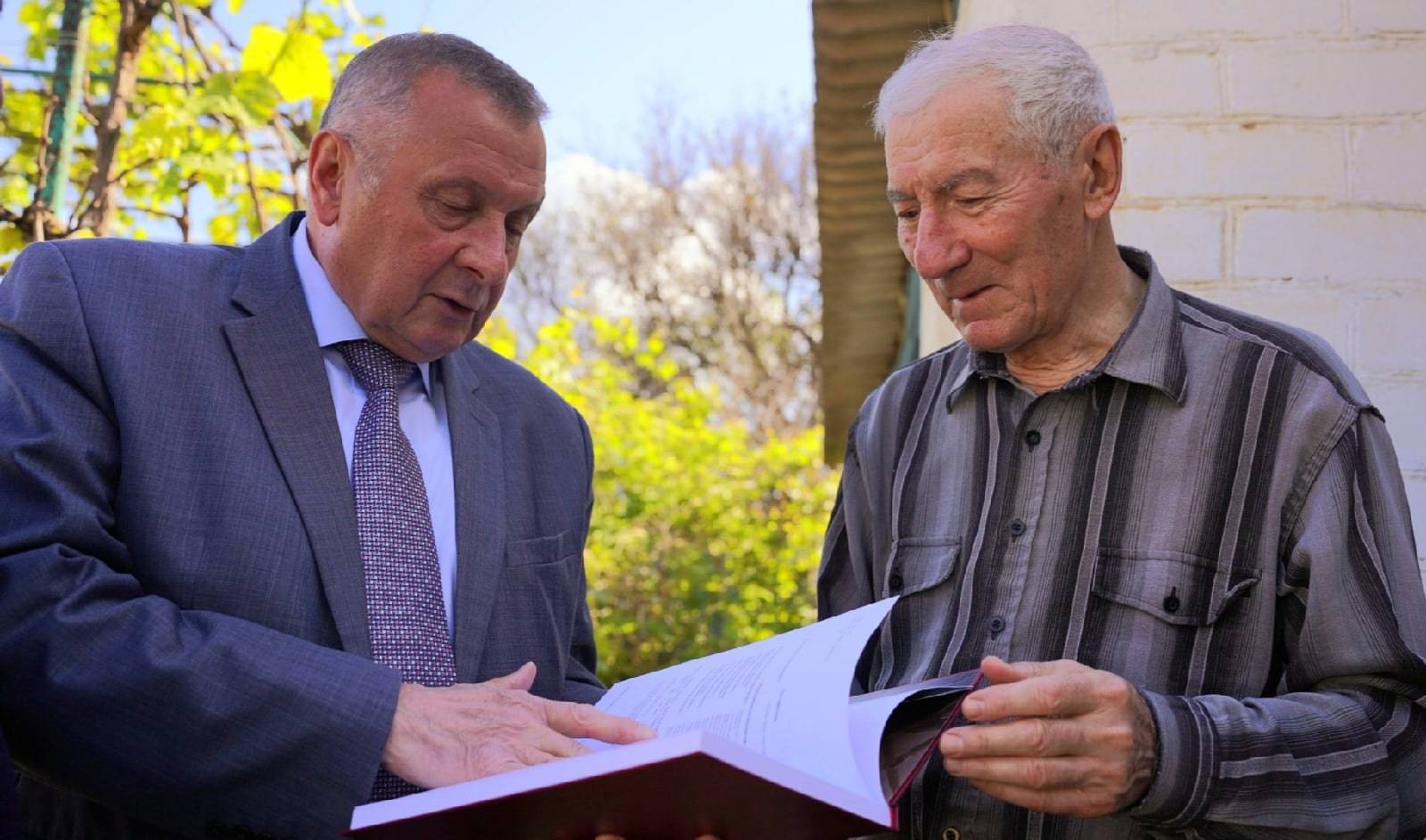 16 мая 2025 г. Палагута А.И., глава Арзгирского муниципального округа, член Местного отделения Ставропольского регионального отделения Российского военно-исторического общества (РО РВИО СК) в Арзгирском муниципальном округе (председатель – Гончаренко О.Е.), и представители администрации торжественно передали А.Г. Карнауху третье издание уникальной книги – «Книга памяти. Арзгирский район».