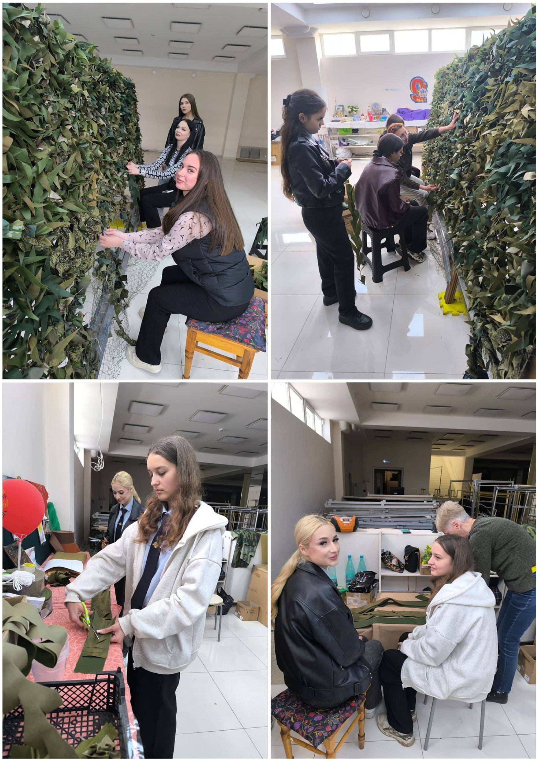 Студенты филиала Ставропольского кооперативного техникума в г. Минеральные Воды под руководством М.Б. Акопяна, председателя Местного отделения РО РВИО СК в Минераловодском муниципальном округе, тоже на регулярной основе оказывают посильную помощь бойцам на передовой. На этот раз ребята присоединились к плетению маскировочных сетей в Волонтёрской группе «Избушка-пушка». В дальнейшем изготовленные сети вместе с гуманитарным грузом будут переданы членами Отделения на передовую.