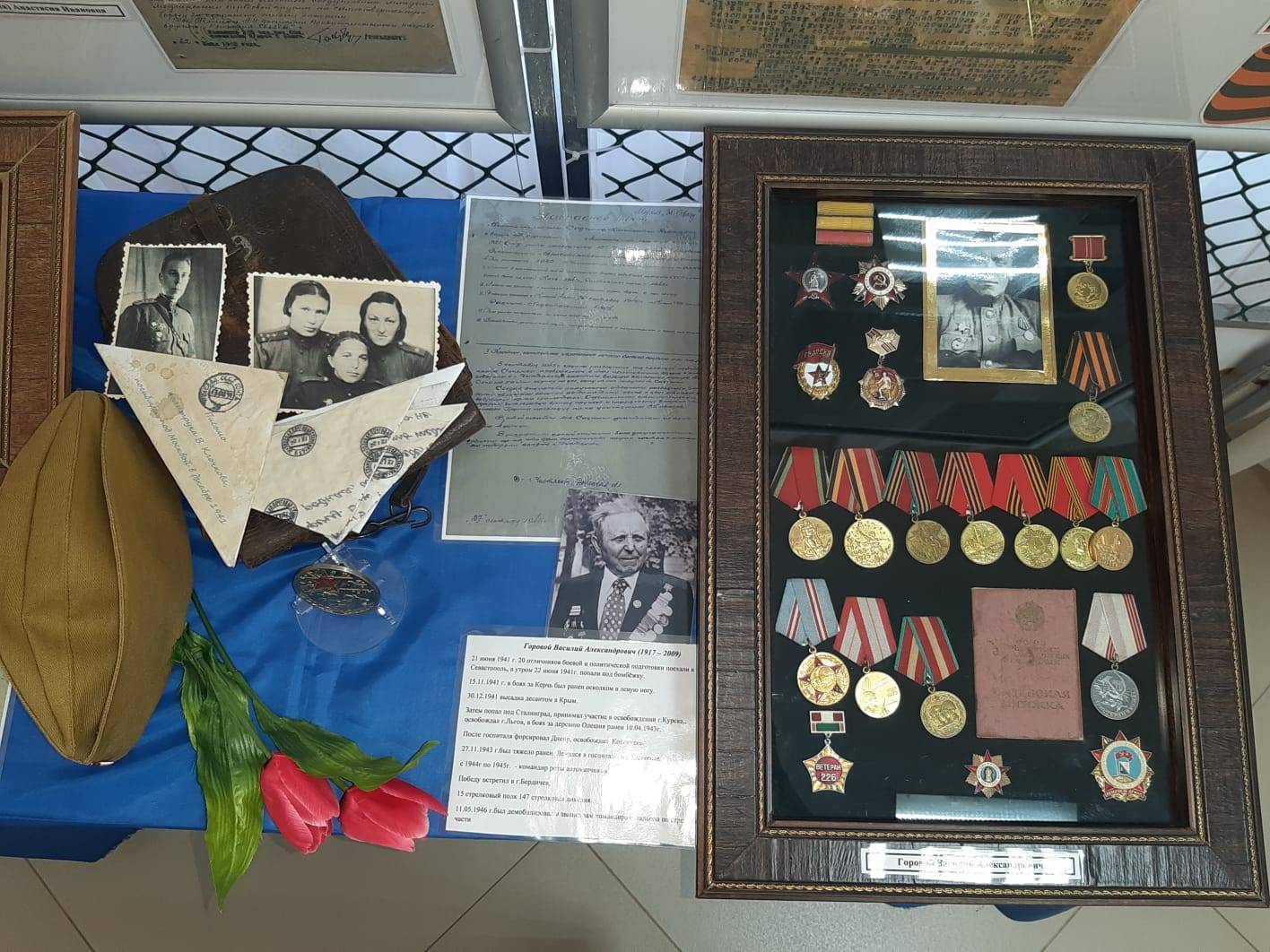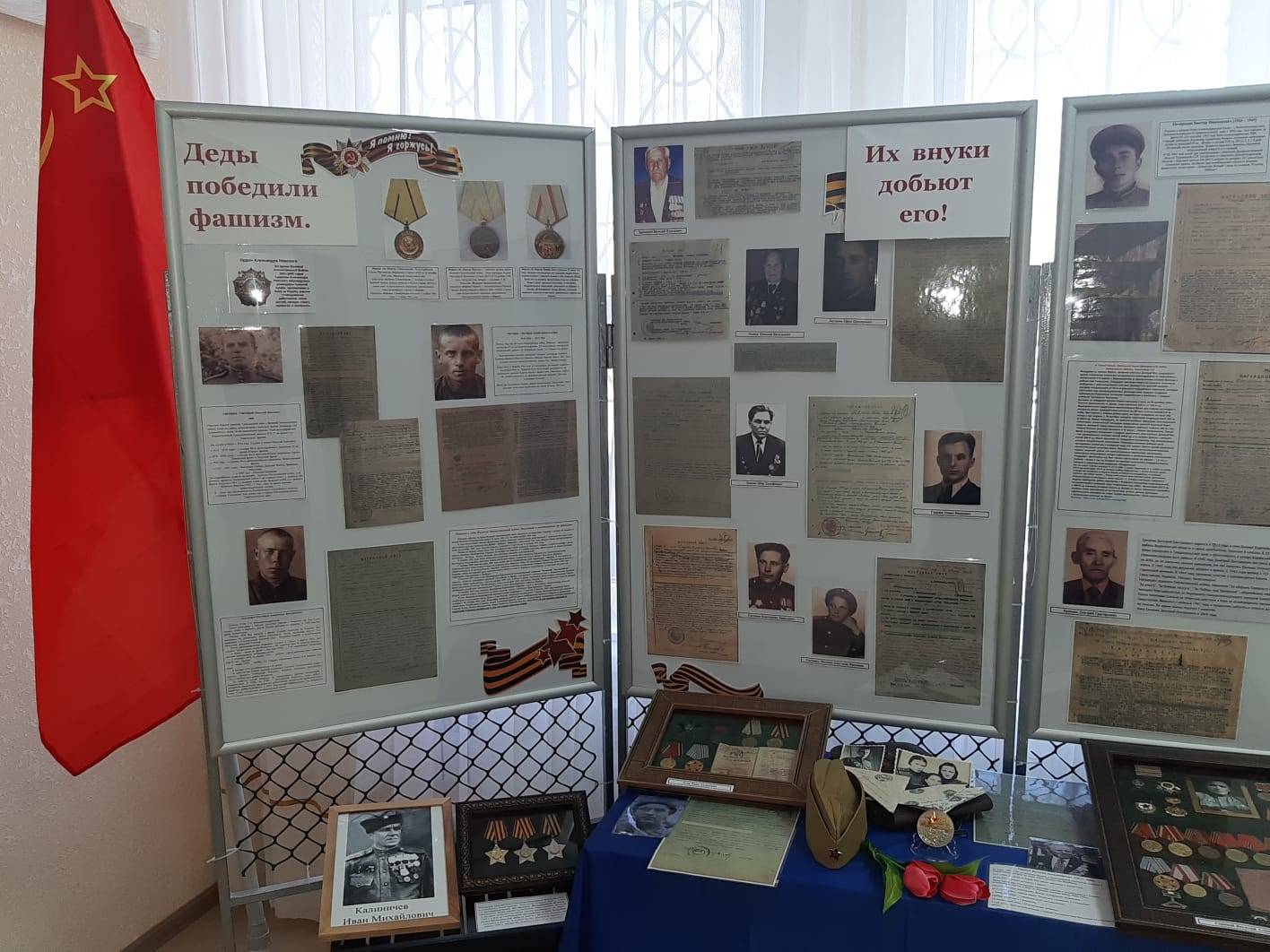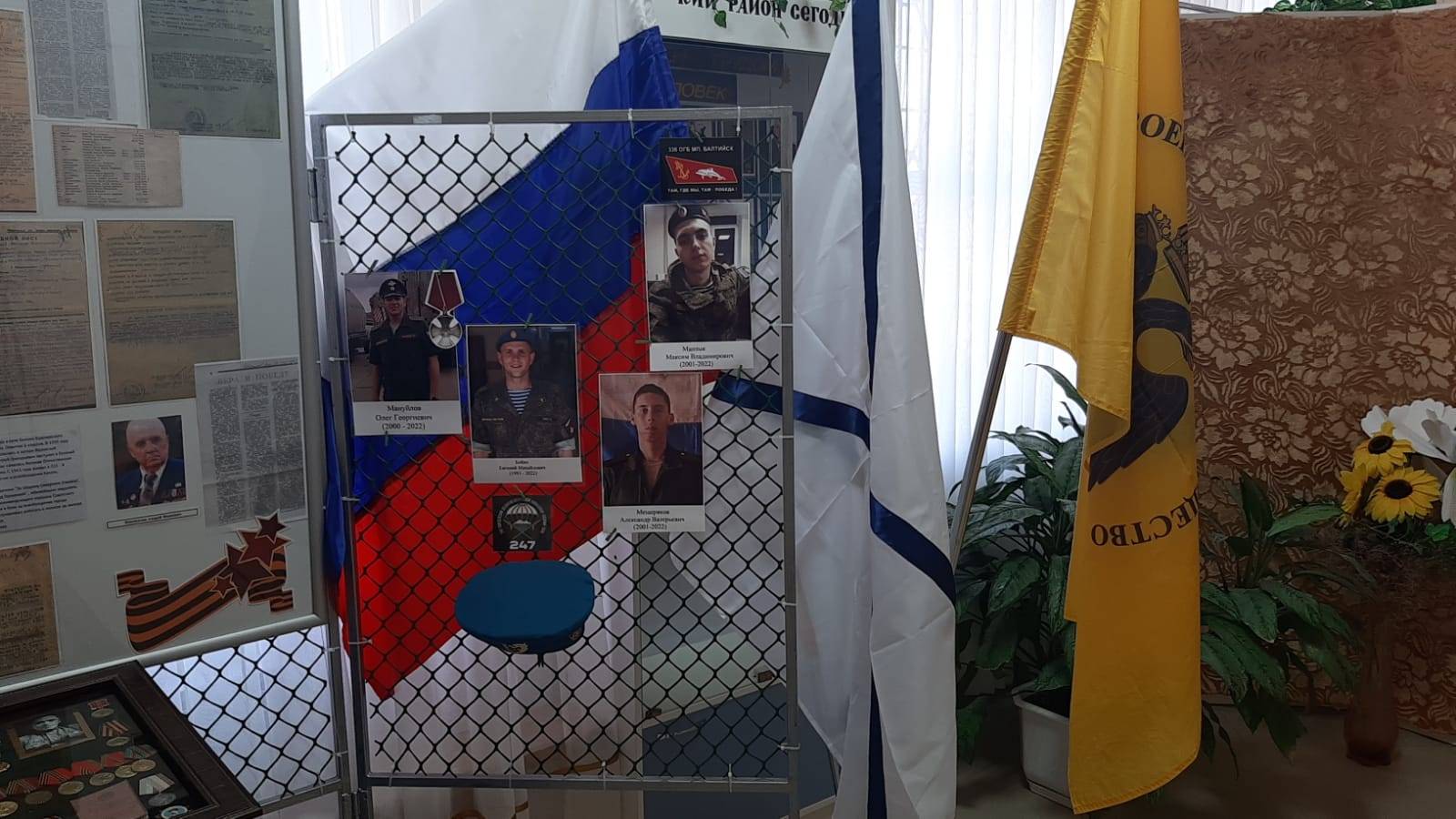 Экспозиция включает в себя фотографии, копии документов земляков, которые принимали непосредственное участие в боях за освобождение Украинской ССР во время Великой Отечественной войны, имеют боевые награды за свои подвиги на полях сражений, а также фотографии земляков, погибших в ходе нынешней спецоперации на Украине.