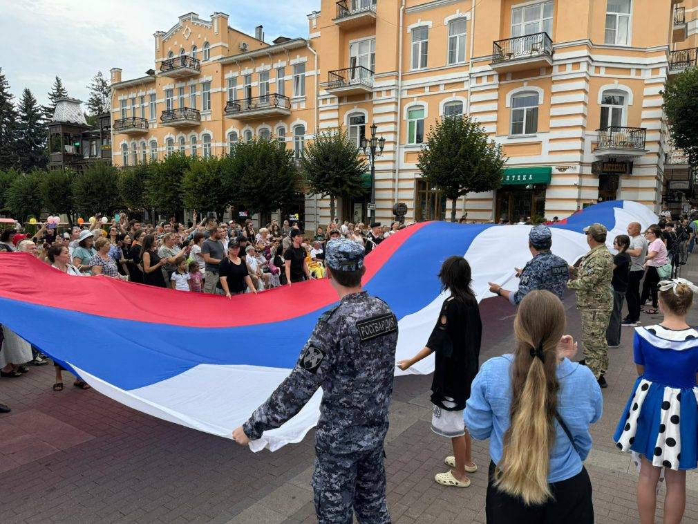 Так, например, 22 августа 2024 г. праздничные мероприятия состоялись в г. Пятигорске (председатель МО РО РВИО СК – Ворошилов Д.Ю., глава города-курорта Пятигорска), где был проведён концерт «Великое знамя России», в Кисловодске (председатель МО РО РВИО СК – Лузин С.С., член совета МО – Моисеев Е.И., глава города-курорта Кисловодска) прошёл флешмоб, в рамках которого 30 городских автобусов украсили триколором, в Минераловодском муниципальном округе (председатель МО РО РВИО СК – Акопян М.Б.) состоялся митинг, в Грачёвском муниципальном округе (председатель МО РО РВИО СК – Степаненко Н.И.) прошла церемония разворачивания большого Государственного флага РФ, презентация выставки «Душа России в символах её» и викторина «Флаг моего государства» (организатор – Жалыбина Г.М., библиотекарь Сергиевской сельской библиотеки, член РО РВИО СК).