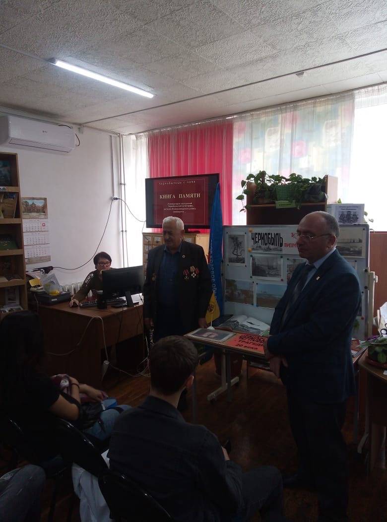 26 апреля 2022 года в г. Минеральные Воды на базе Центральной библиотеки им. Р. Котовской в отделе краеведения студенты ЧПОУ «Ставропольский кооперативный техникум» под руководством Акопяна М.Б., члена Регионального отделения Российского военно-исторического общества в Ставропольском крае (РО РВИО СК) посетили встречу с ликвидатором аварии В.Х. Цаканян. Студенты услышали рассказ об одной из страшных трагедий XX века из первых уст.