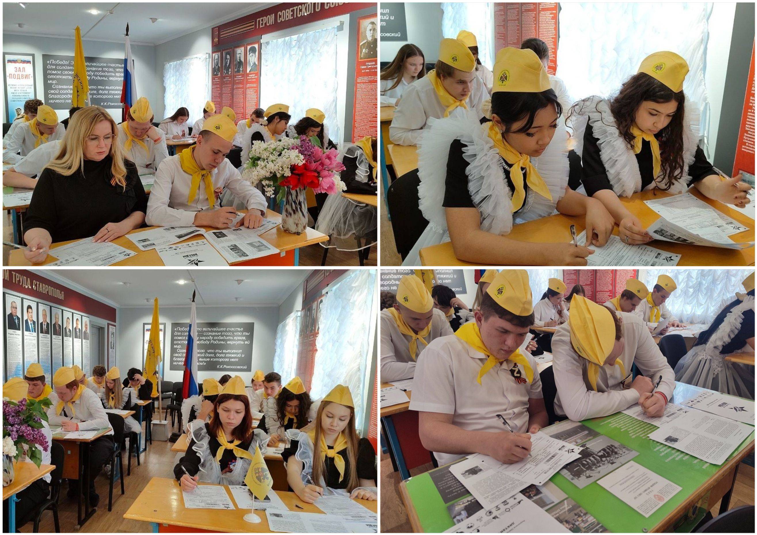 В МБОУ СОШ №22 г. Кисловодска (директор – Кондратенко А.Б., член Местного отделения РО РВИО СК в городе-курорте Кисловодске (председатель – Грачёв С.Н.)) на площадке МУМЦ «Авангард» (руководитель – Буров Е.Н., член РО РВИО СК) участие в «Диктанте Победы» приняли более 300 учеников и 50 учителей школы.
