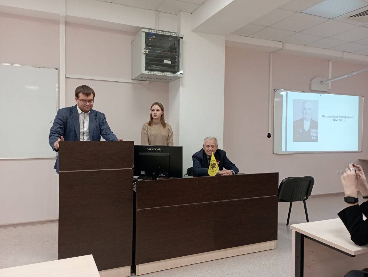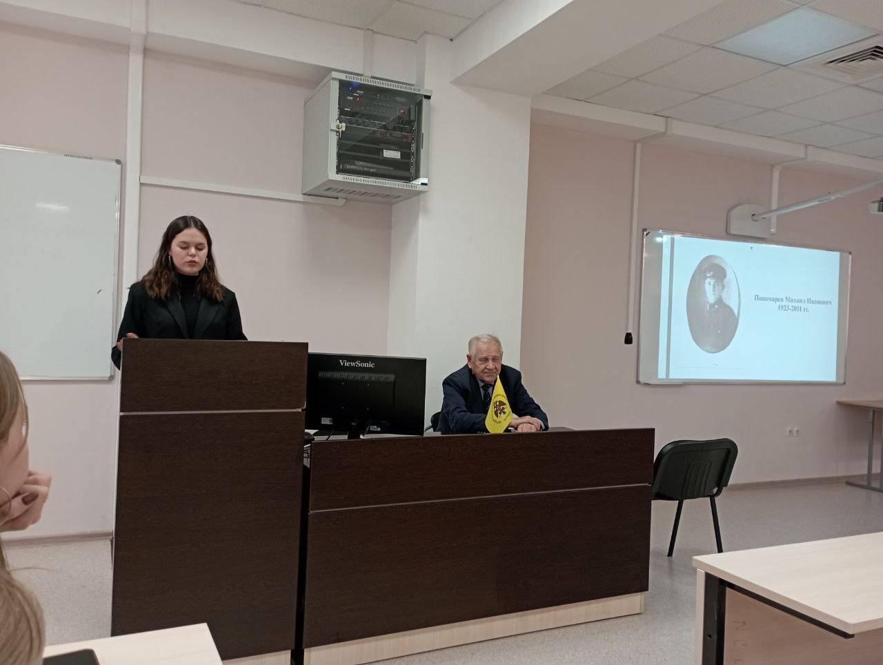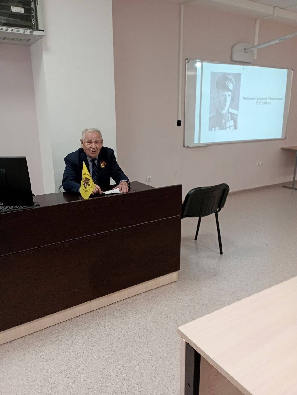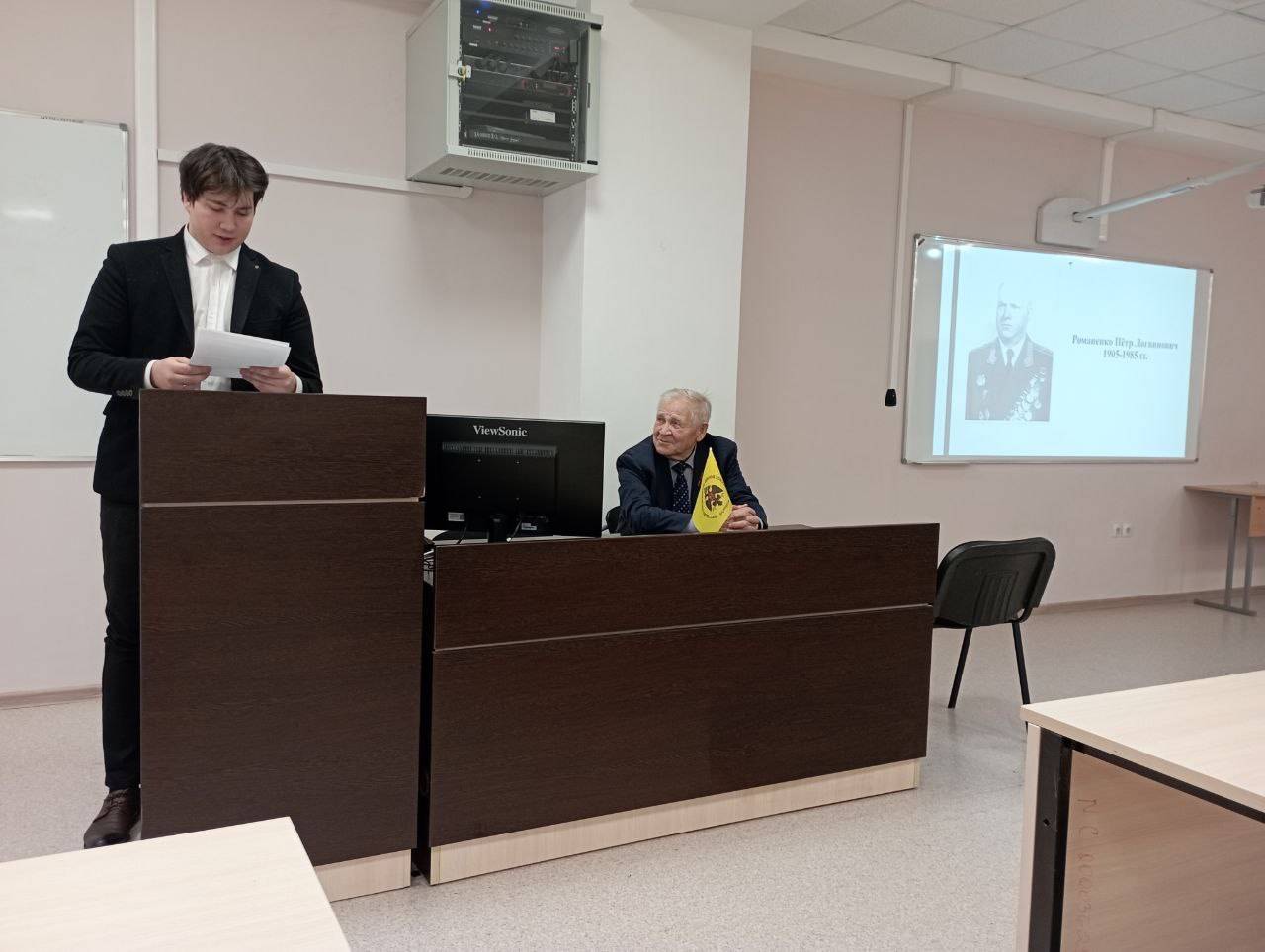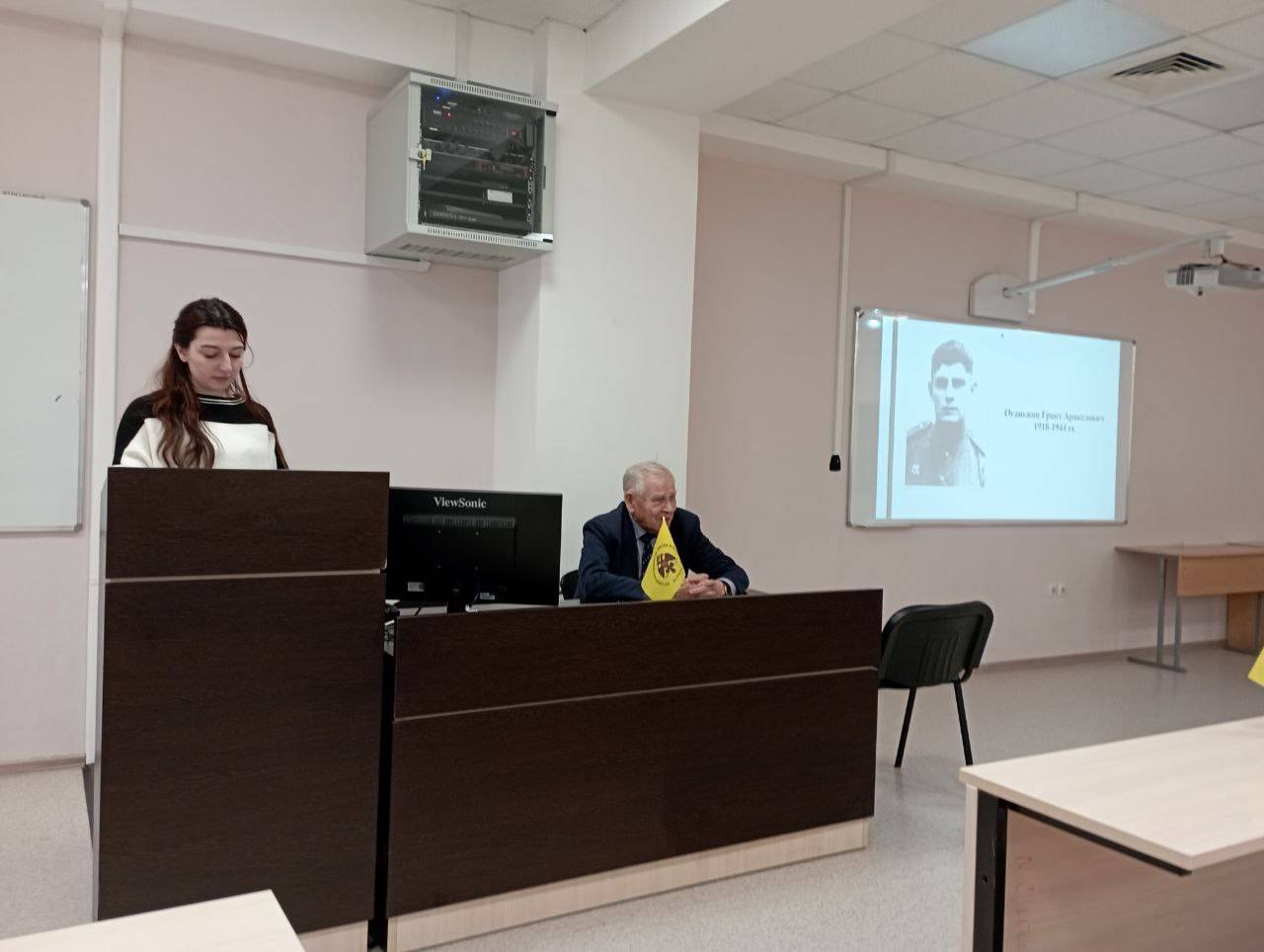 Судавцов Н.Д., д.и.н., Почетный профессор СКФУ, главный научный сотрудник отдела военной истории и патриотической работы СГМЗ, один из учредителей РО РВИО СК, познакомил студентов с биографией дважды Героя Советского Союза Н.Г. Степаняна, рассказал о его подвиге, своей научной работе по изучению жизненного пути Героя.