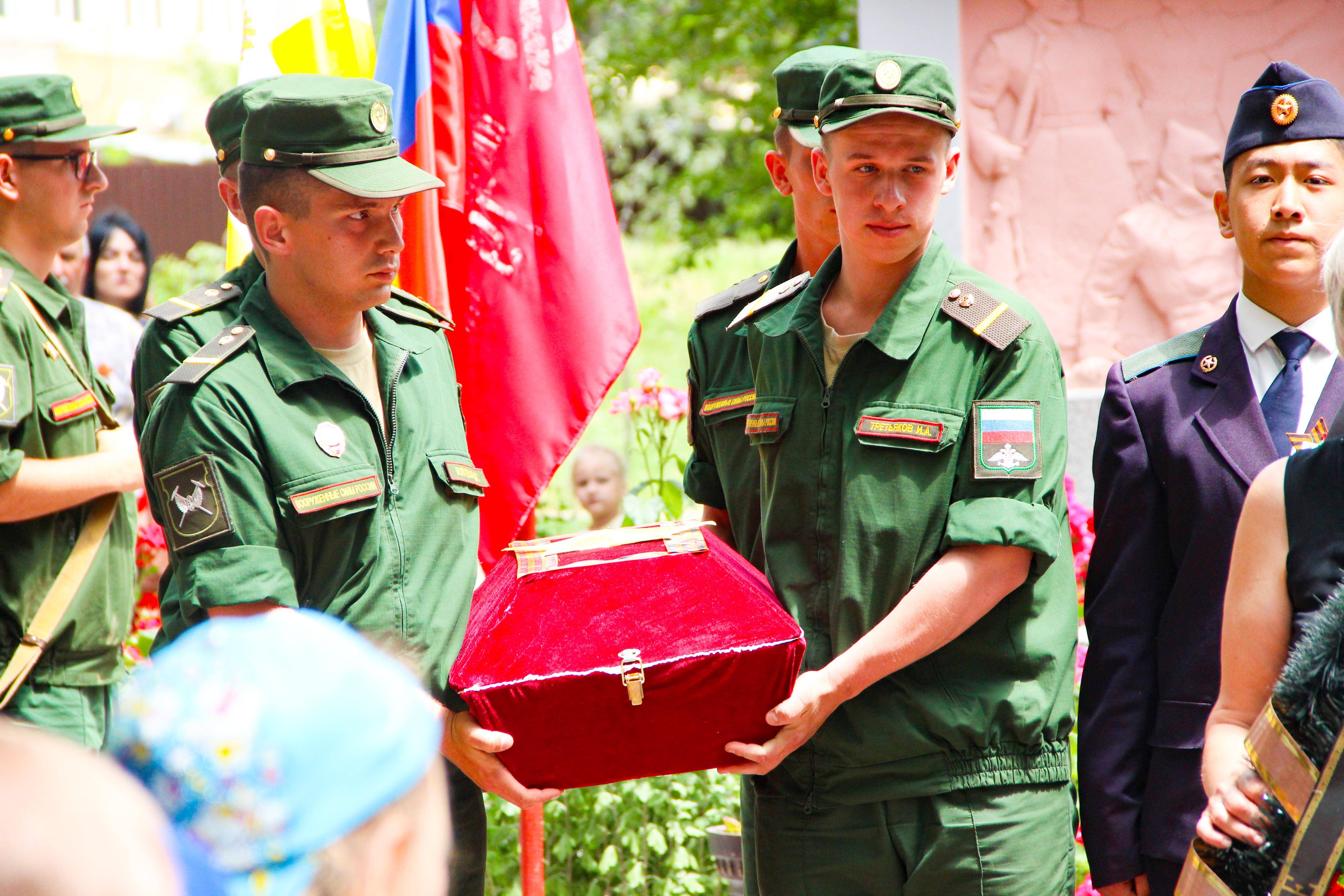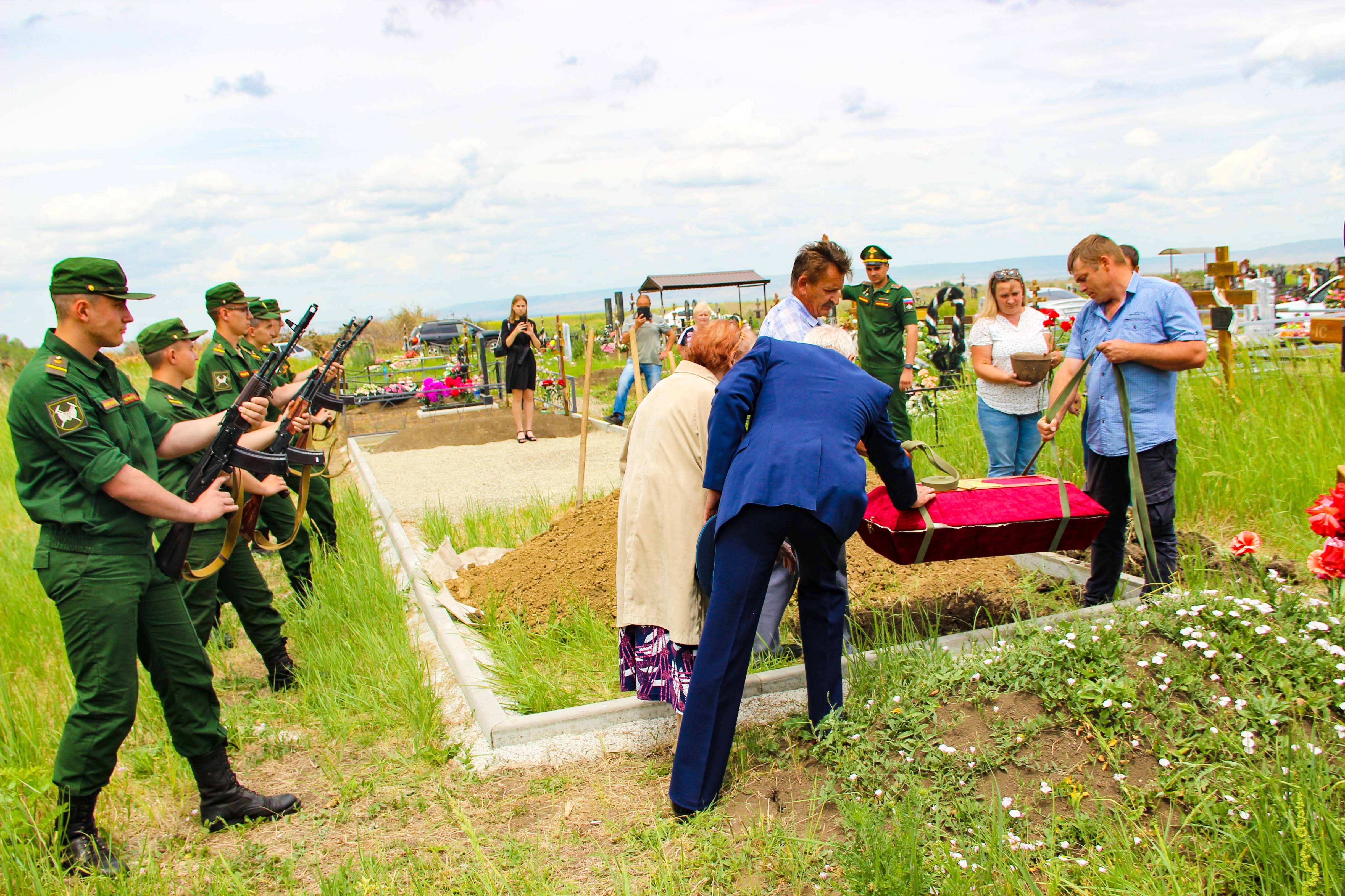 Как отметила, член РО РВИО СК, главный хранитель фондов Кочубеевского историко-краеведческого музея Л.Н. Солопова: «Сотрудники Кочубеевского историко-краеведческого музея принимали непосредственное участие в организации перезахоронения советского солдата и благодарны за выпавшую честь, участвовать в этом великом деле. Мы, так же гордимся тем, что каска солдата была передана родственниками на хранение в музей». Ковчег с останками бойца захоронен с воинскими почестями на общественном кладбище с. Кочубеевского. В последний путь рядового Красной Армии провожали родные – внуки и правнуки, общественность села и района, а так же руководитель поискового отряда В.М. Лымарева.