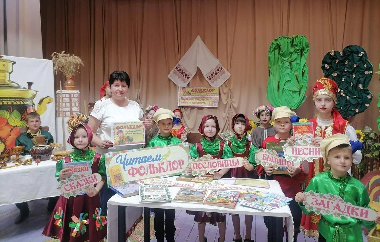 Русский народ во все времена уделял особое внимание быту, семье и родному дому. Именно поэтому особенно интересными являются семейные традиции и обычаи. Участники мероприятия попробовали окунуться в прошлое, обсудили особенности жизни и быта наших предков, вспомнили, как они одевались, каким рукоделием занимались, какие пели песни. Библиотекарь Н.П. Никифорова, член РО РВИО СК, представила гостям книжную выставку «Читаем фольклор» и познакомила их с разнообразием русского фольклора. С большим удовольствием ребята участвовали в русских народных играх «Ручеёк», «Горелочки с платочком», разгадывали значения пословиц и поговорок, учились ходить с коромыслом, вышивать, гладить без утюга.
