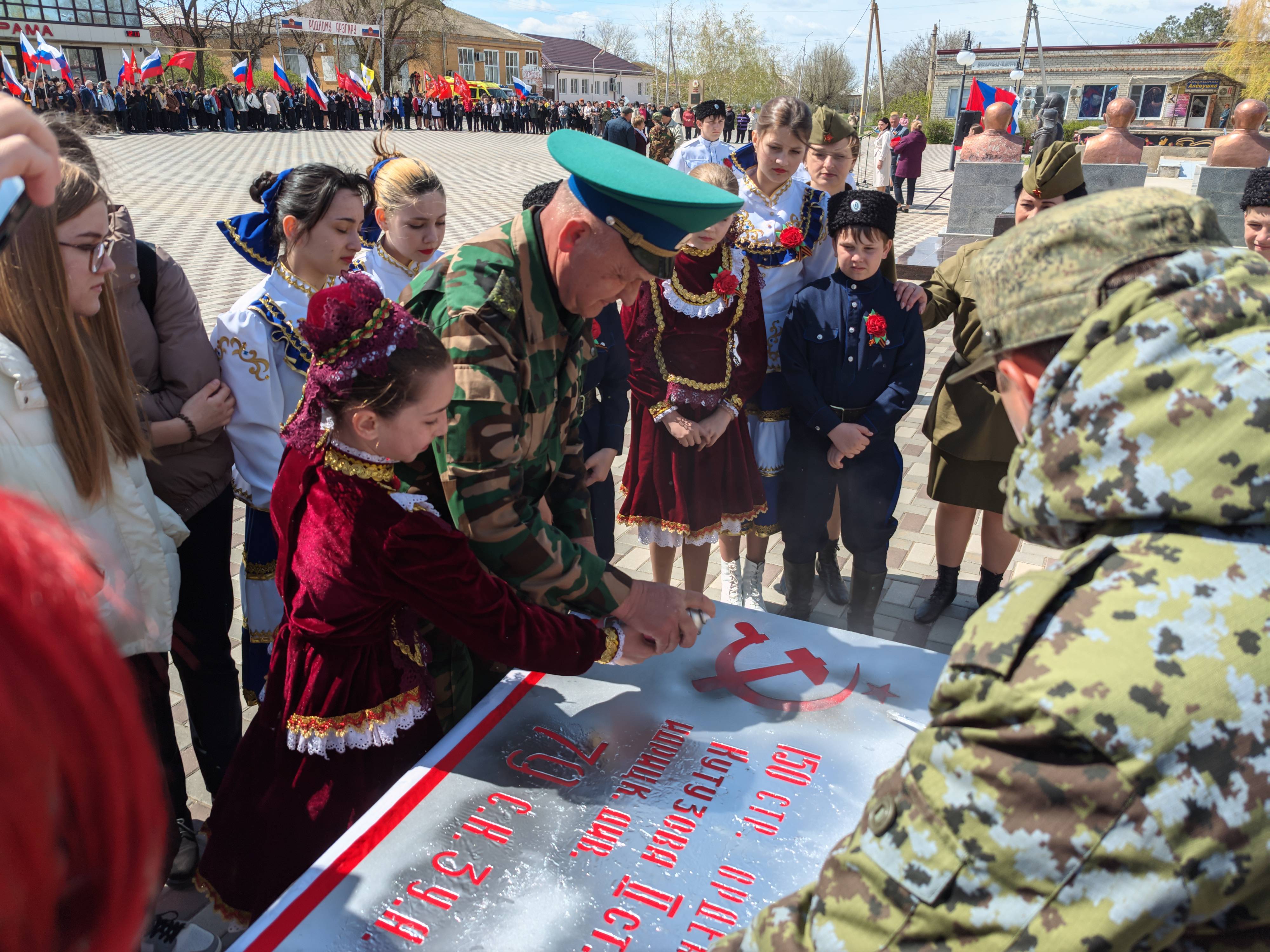 Колонна автопробега, прибывшая в Арзгирский муниципальный округ, посетила села Новоромановское, Петропавловское, а также муниципальный центр – с. Арзгир, на площади которого состоялся концерт с участием членов РО РВИО СК. На мероприятии присутствовали представители местных властей, общественных организаций и молодёжь.