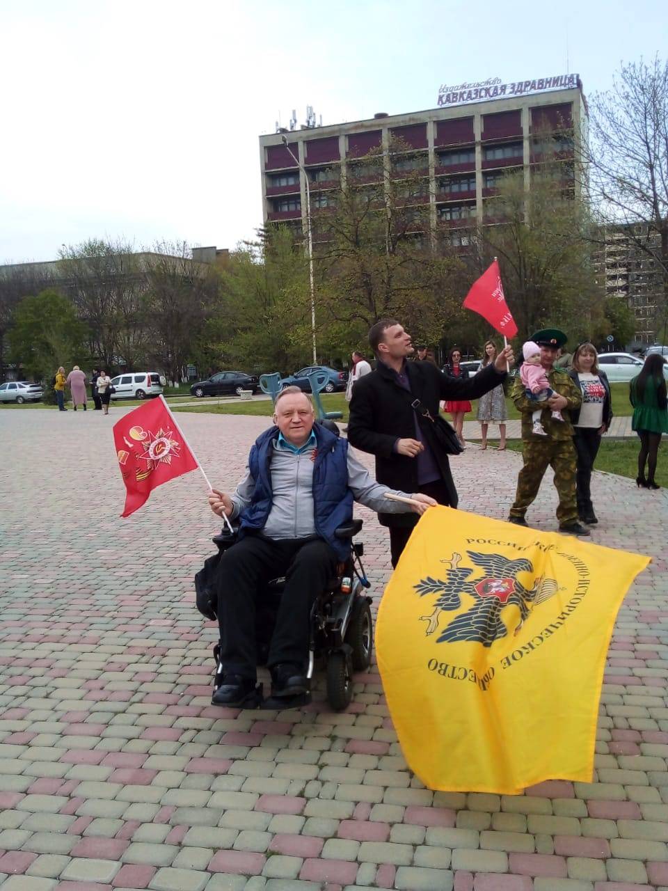 18 апреля 2022 года в г. Минеральные Воды под руководством члена Регионального отделения Российского военно-исторического общества в Ставропольском крае (РО РВИО СК) Акопяна М.Б. студенты ЧПОУ «Ставропольский кооперативный техникум» приняли участие в краевом автопробеге «Эх, путь-дорожка фронтовая», проходящем в рамках всероссийской акции «Знамя Победы». Координатор автопробега – В.И. Лозовой, депутат Думы Ставропольского края, подполковник пограничных войск ФСБ, кавалер Ордена Мужества, член РО РВИО СК.