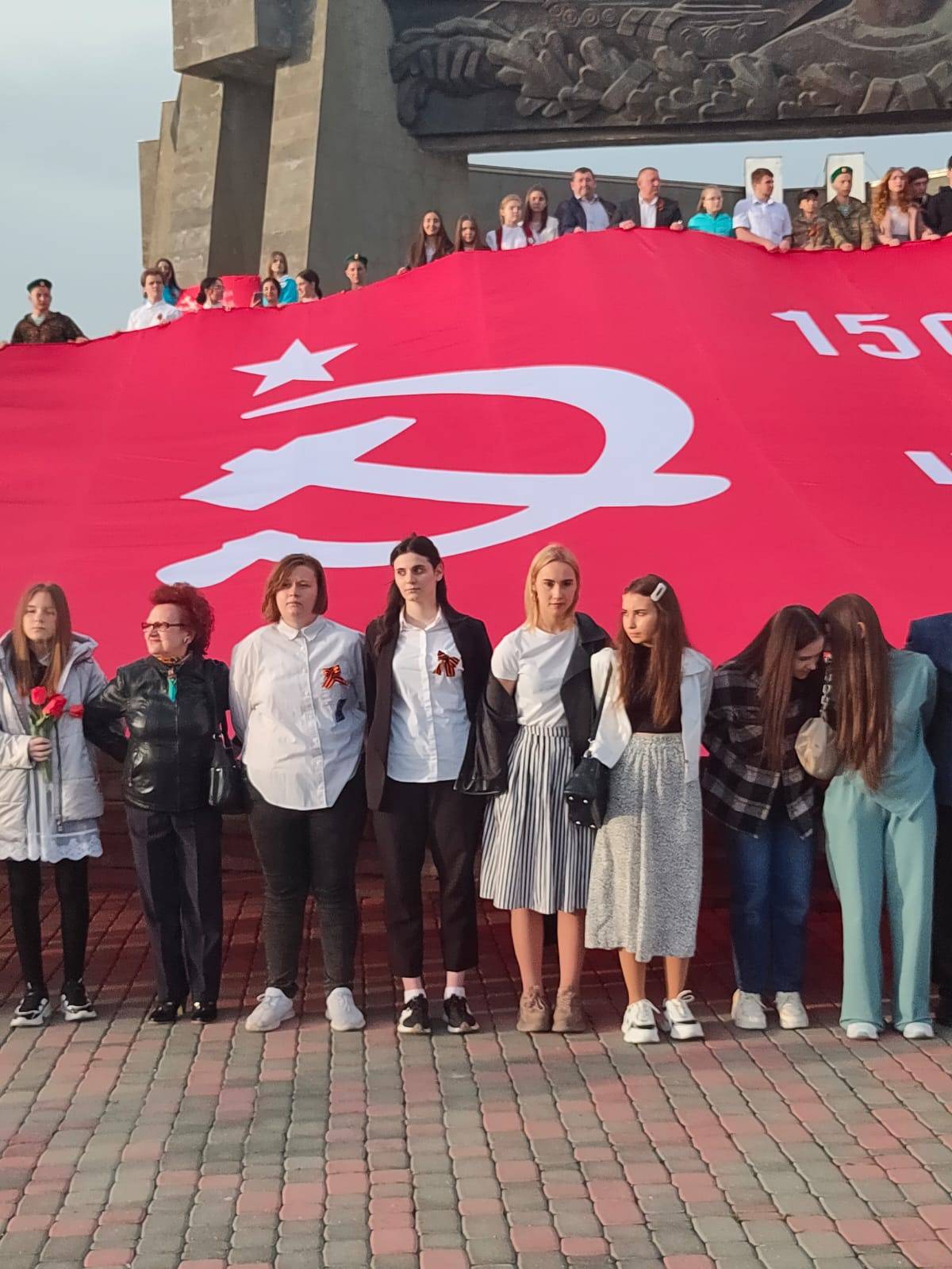 Колона автопробега прибыла к мемориалу «Огонь Вечной Славы» в г. Минеральные Воды, где по традиции участники автопробега развернули самую большую копию Знамени Победы площадью более 200 квадратных метров. Участники акции возложили цветы к мемориалу, почтив память погибших минутой молчания.