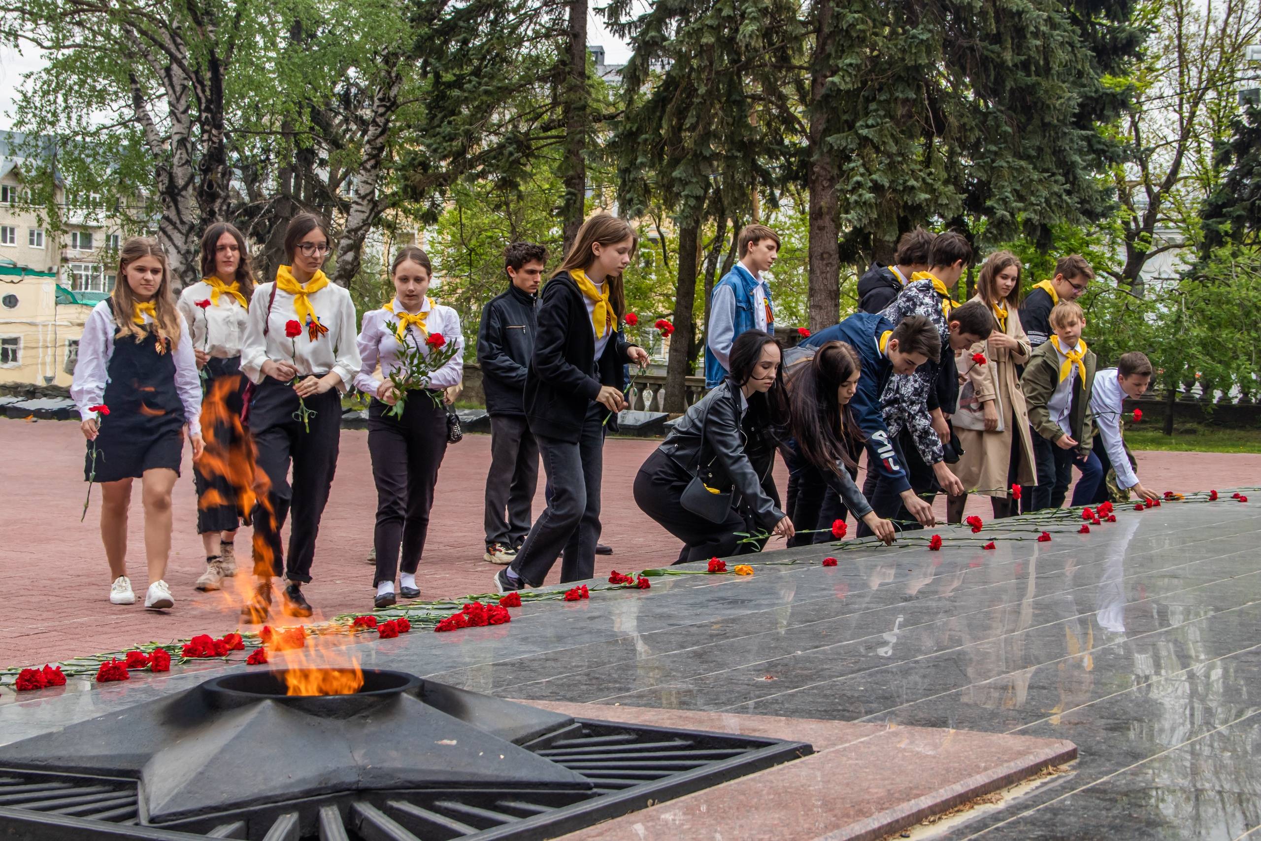 Члены клуба «Юный Патриот» РО РВИО СК возложили цветы к Мемориалу «Огонь Вечной Славы».