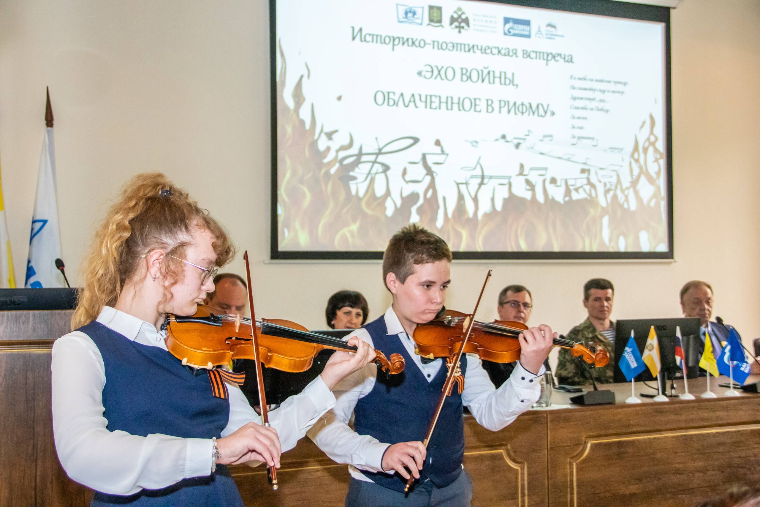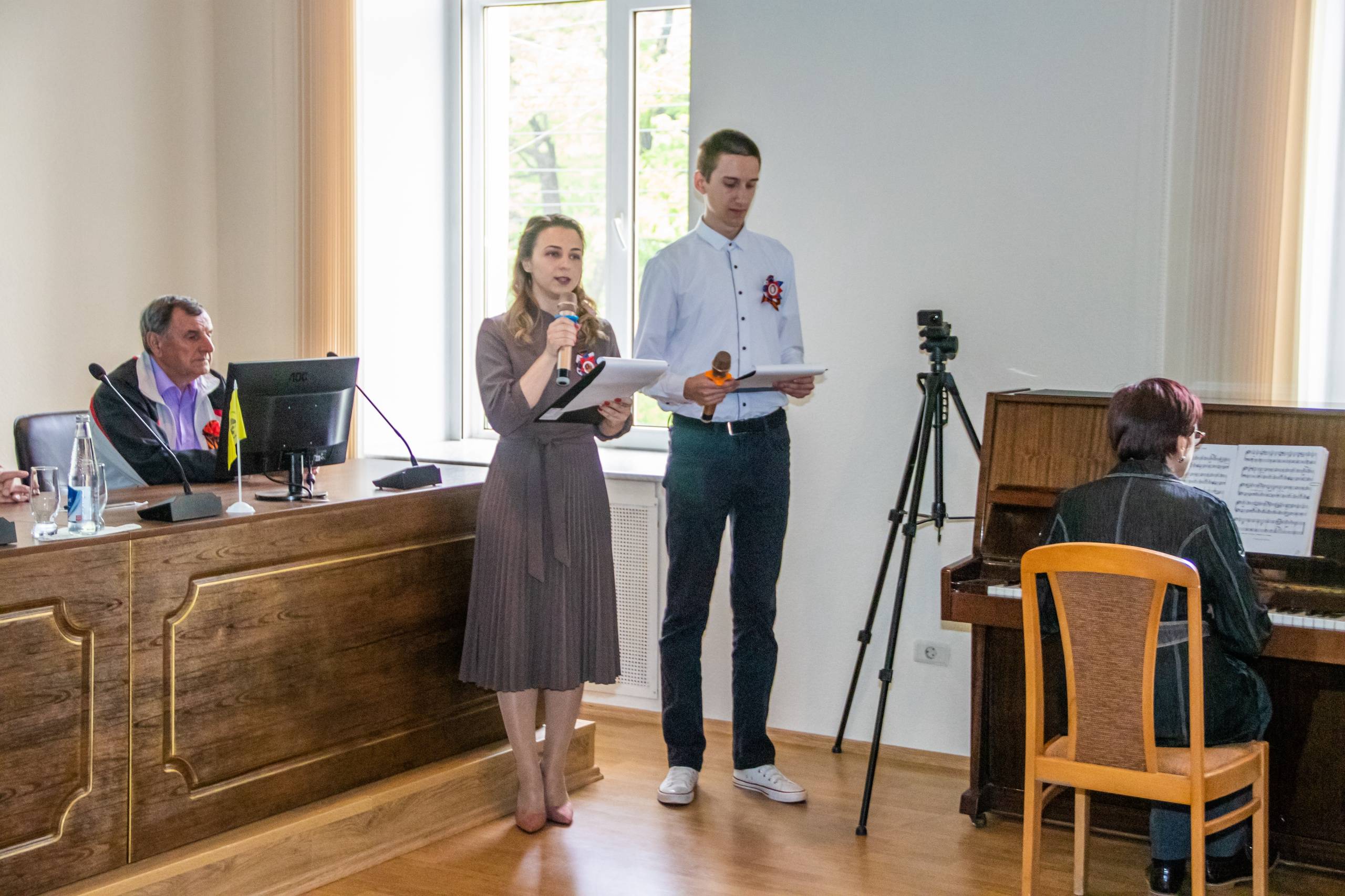 Ведущими мероприятия стали Новак Валерия, младший научный сотрудник отдела военной истории и патриотической работы СГМЗ, член РО РВИО СК, и Подгурский Илья, студент 2-го курса педагогического факультета СГПИ. Аккомпанировали на пианино И.М. Назарова и В. Холодков, ученик 9 «В» класса МБОУ СОШ №7 г. Ставрополя, член клуба «Юный Патриот» РО РВИО СК.