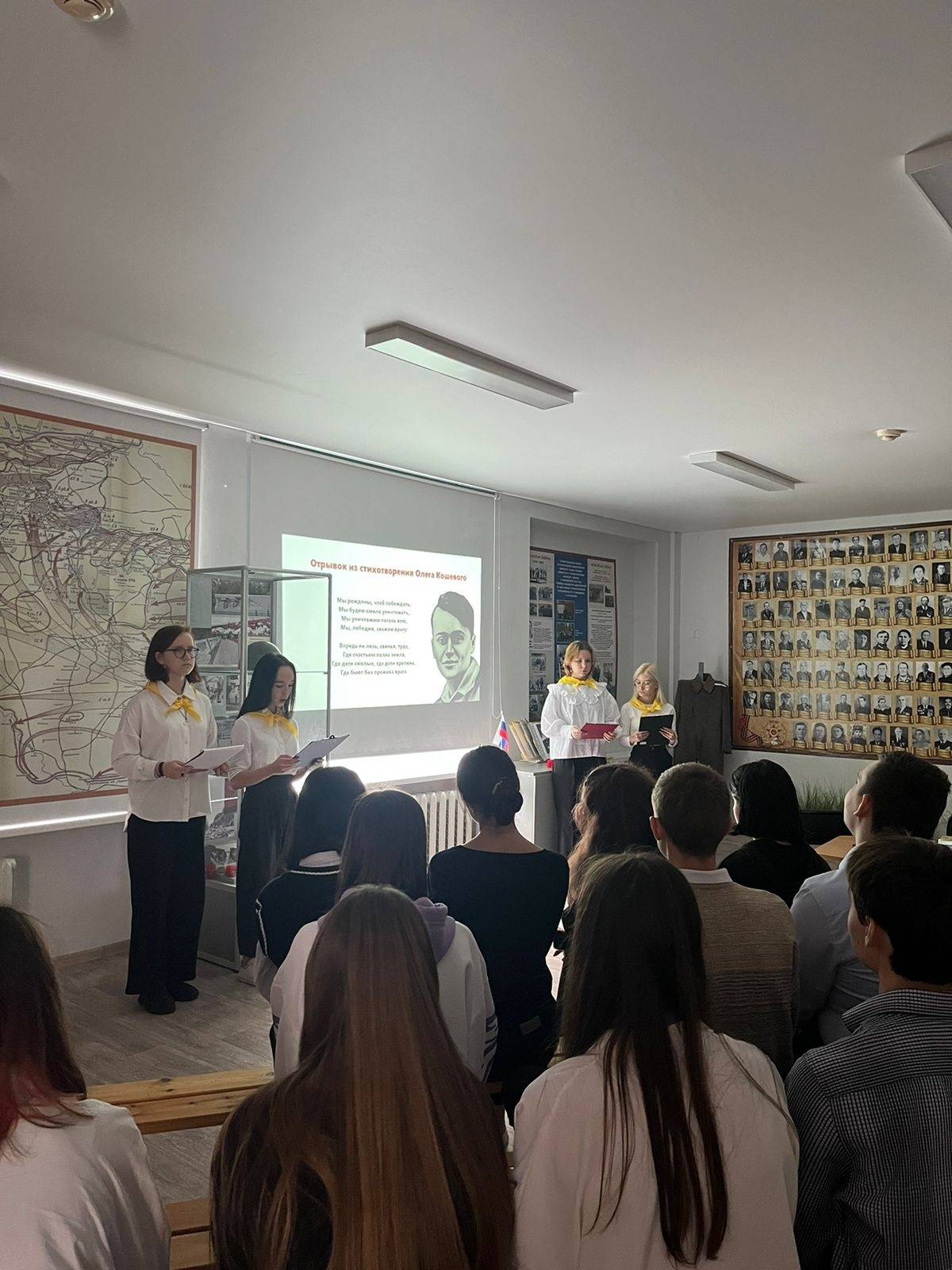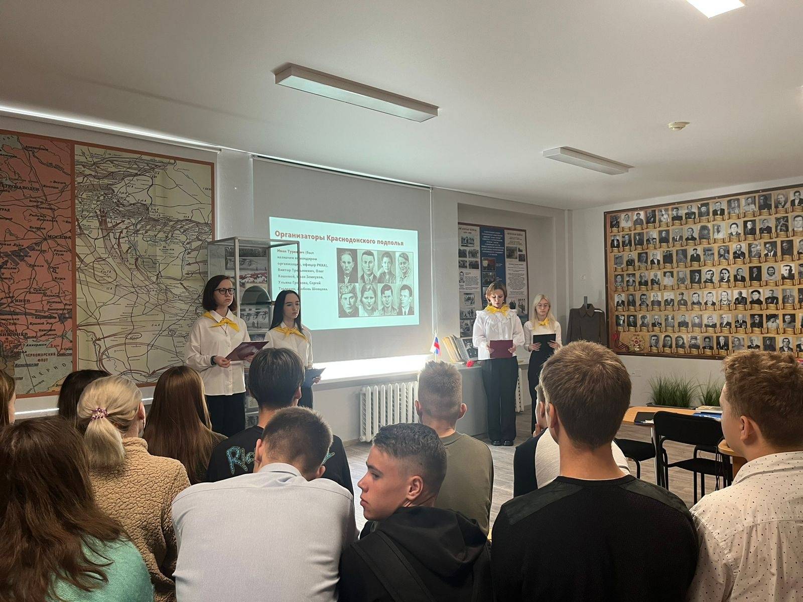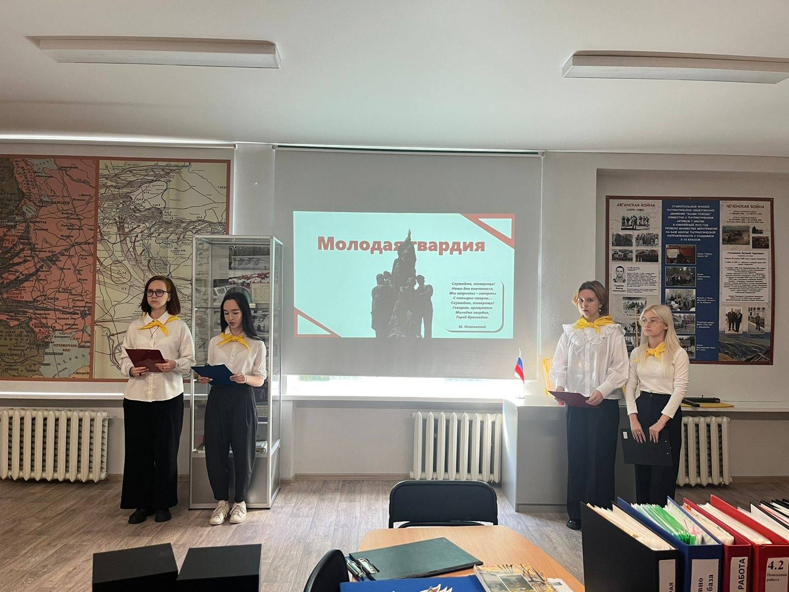 14 октября 2022 года на базе МБОУ СОШ №7 г. Ставрополя состоялось заседание клуба «Юный патриот» Ставропольского регионального отделения Российского военно-исторического общества (РО РВИО СК) (председатель – С.А. Шевелёв) в формате музейного урока «Герои-молодогвардейцы».