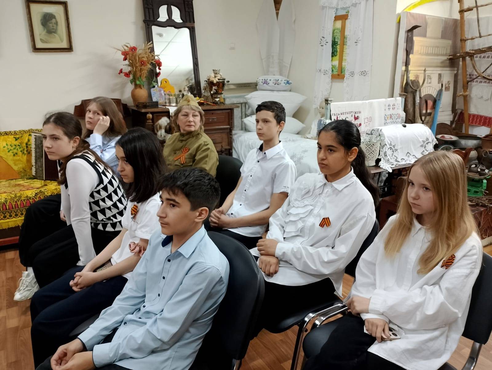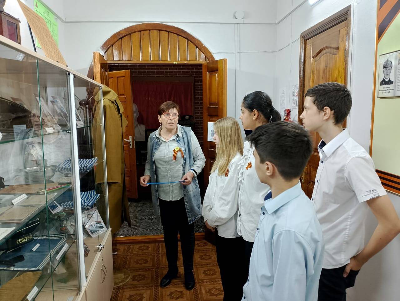 В этот же день учащиеся МКОУ СОШ №4 с. Кочубеевского посетили Кочубеевский историко-краеведческий музей, ставший площадкой для проведения Всероссийской акции в поддержку чтения – «Библионочь – 2025». В ходе мероприятия участники вместе с младшим научным сотрудником музея Е.В. Немыкиной, членом РО РВИО СК, провели параллели между Великой Отечественной войной и специальной военной операцией, размышляя о героизме солдат и офицеров, о помощи тыла фронту, о геноциде, как о форме фашизма против целых народов и наций. Вспомнили имена героев-земляков прошлых лет, участников Великой Отечественной войны, и героев нашего времени, участников специальной военной операции.