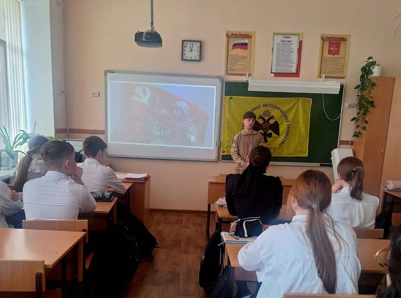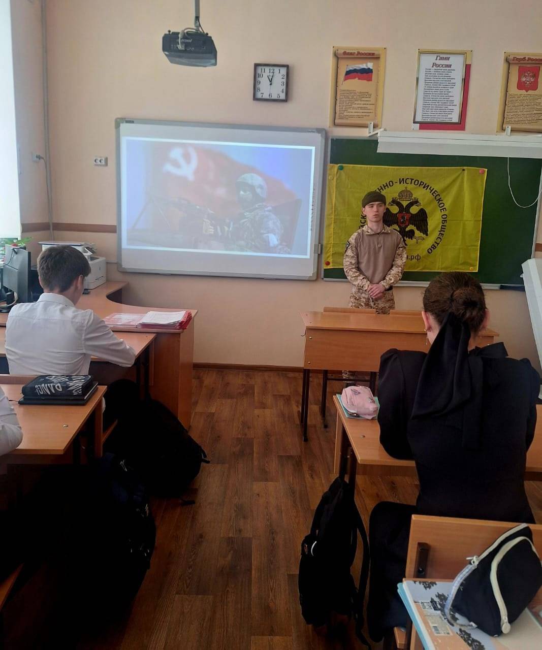 Валерий окончил школу в 2023 г. По зову сердца он отправился на СВО, чтобы защищать свою Родину, своих близких людей. Подробно рассказал ребятам о военной подготовке, о воинском братстве, о друзьях по оружию, о сложностях военного быта.