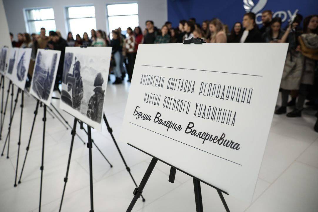 22 февраля 2023 года на базе Северо-Кавказского федерального университета (СКФУ) открылась авторская выставка репродукций картин военного художника, представителя пресс-службы РО РВИО СК, ведущего специалиста отдела патриотического воспитания и поддержки министерства молодежной политики Ставропольского края - Валерия Букши. Он рисует бойцов на передовой Специальной военной операции. Автор сам неоднократно бывал в зоне проведения СВО и его работы – это не плод его фантазии, а реальные люди с реальными историями. После открытия выставки студенты смогли пообщаться с художником и узнать о всех особенностях и тонкостях создания его работ. С работами художника можно ознакомиться в холле первого корпуса СКФУ.