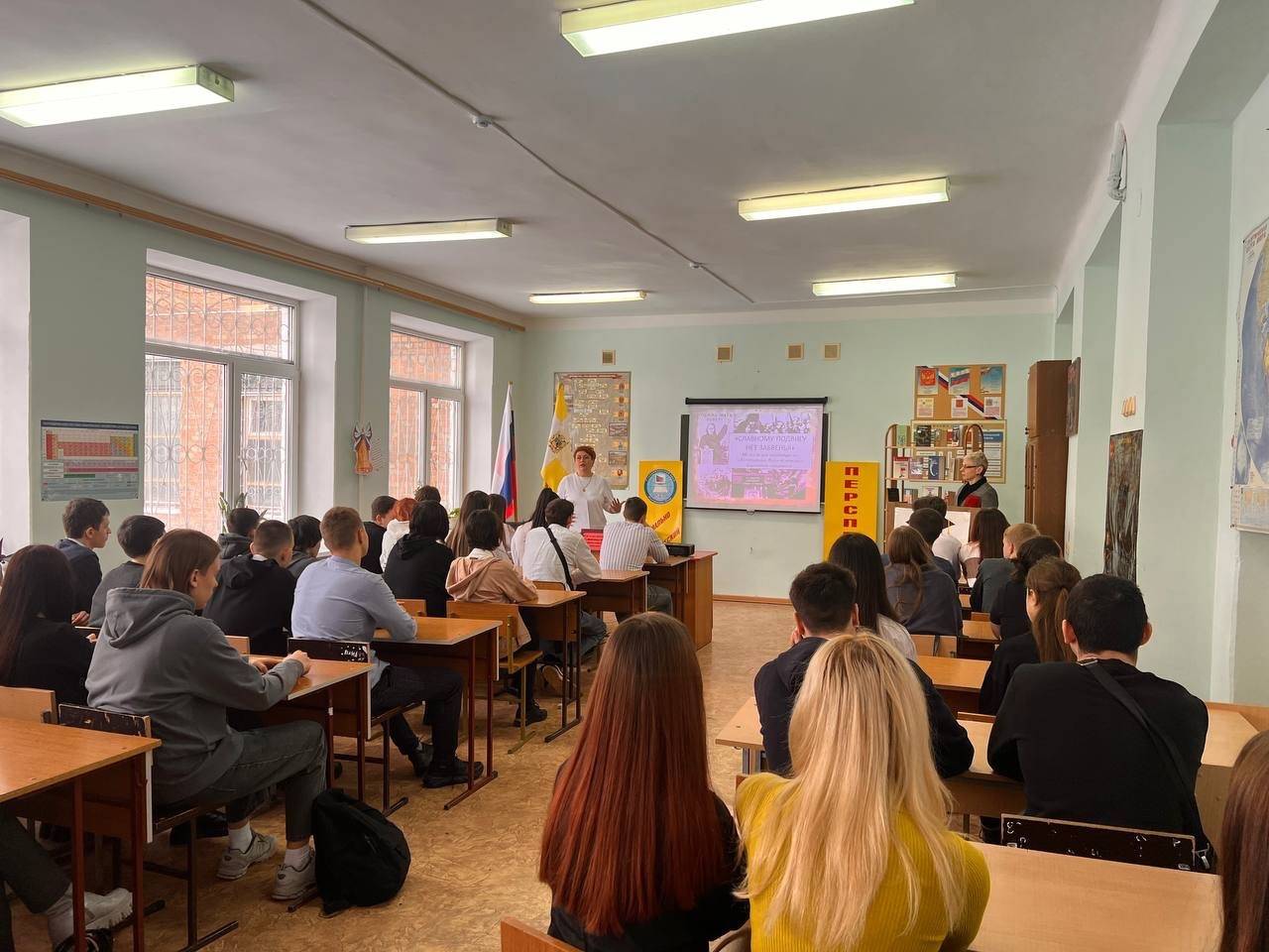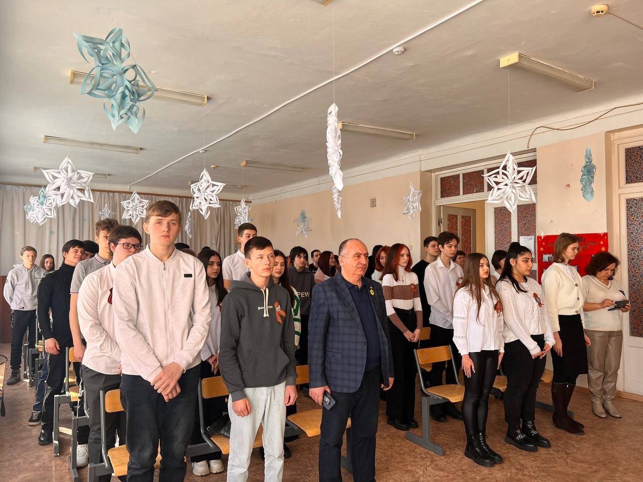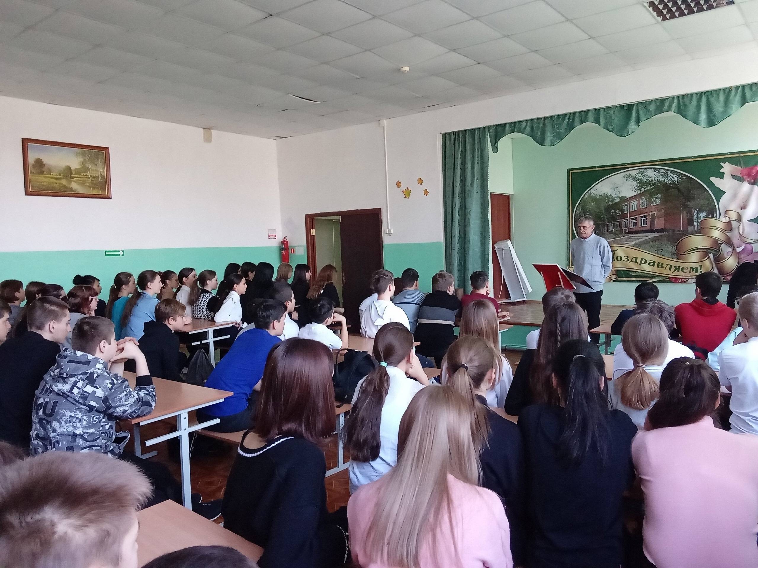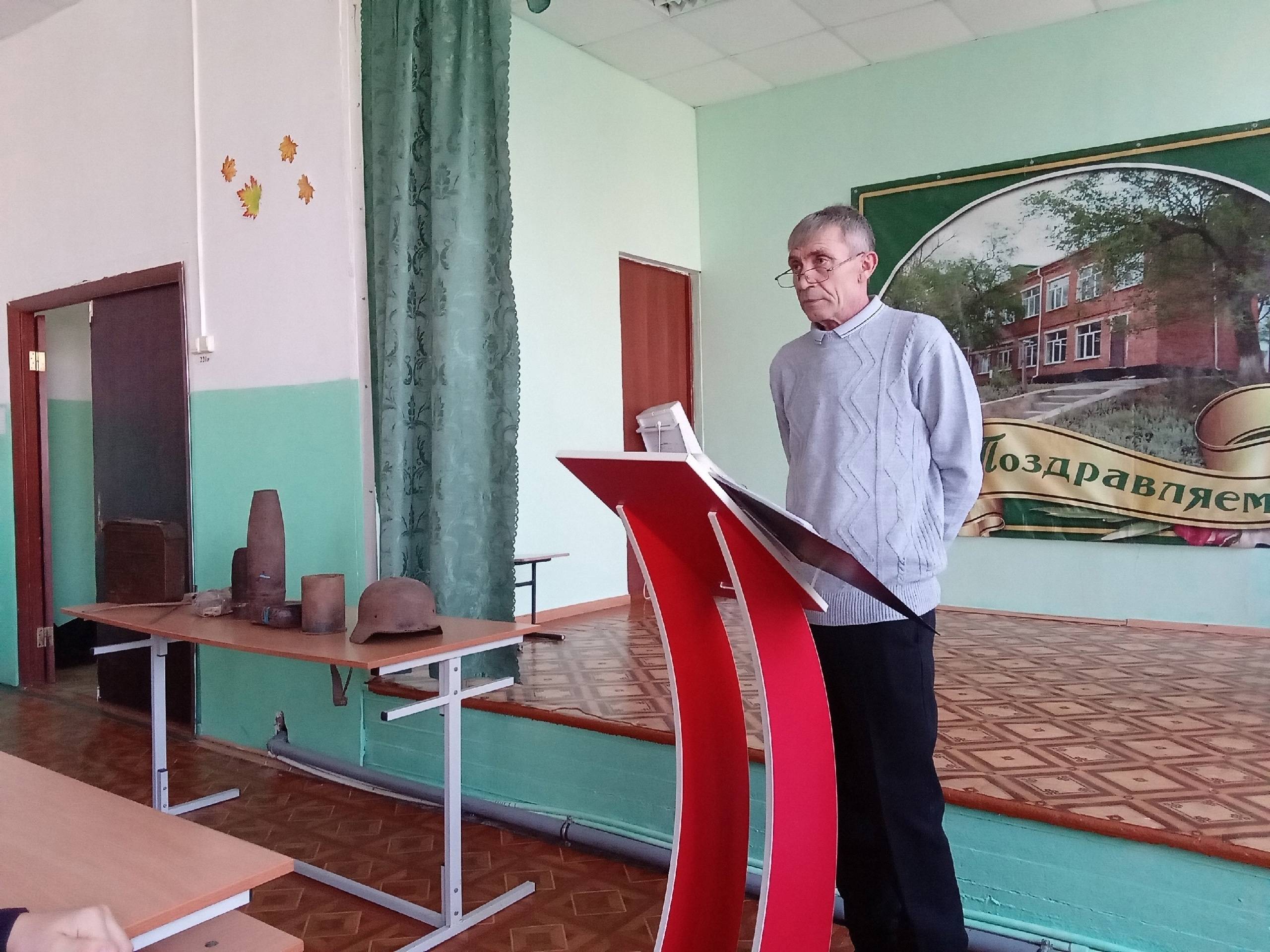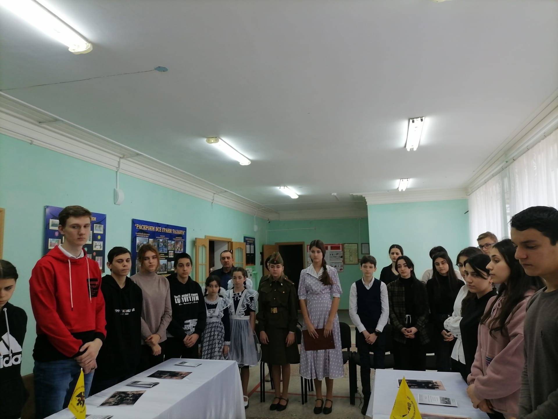 Акопян М.Б., активист РО РВИО СК, провел с учащимися беседу о значении сохранения исторической памяти, о необходимости противодействия фальсификации истории, рассказал об увековечивании подвигов солдат в памятниках и мемориалах, в названиях улиц, а также о реализации проекта РО РВИО СК «Улица Героя» в Минераловодском городском округе. Присутствующие почтили память всех павших защитников Отечества минутой молчания.