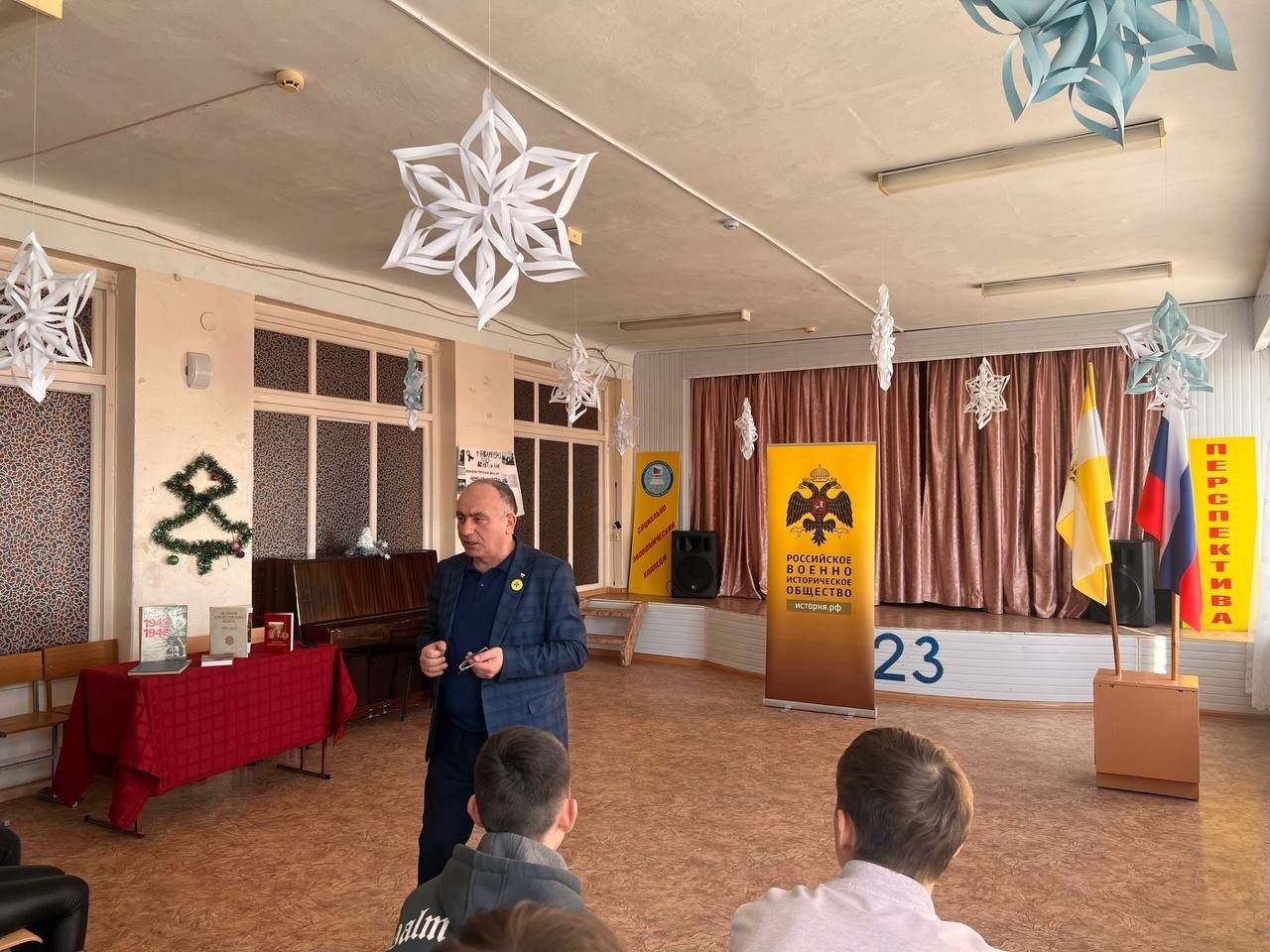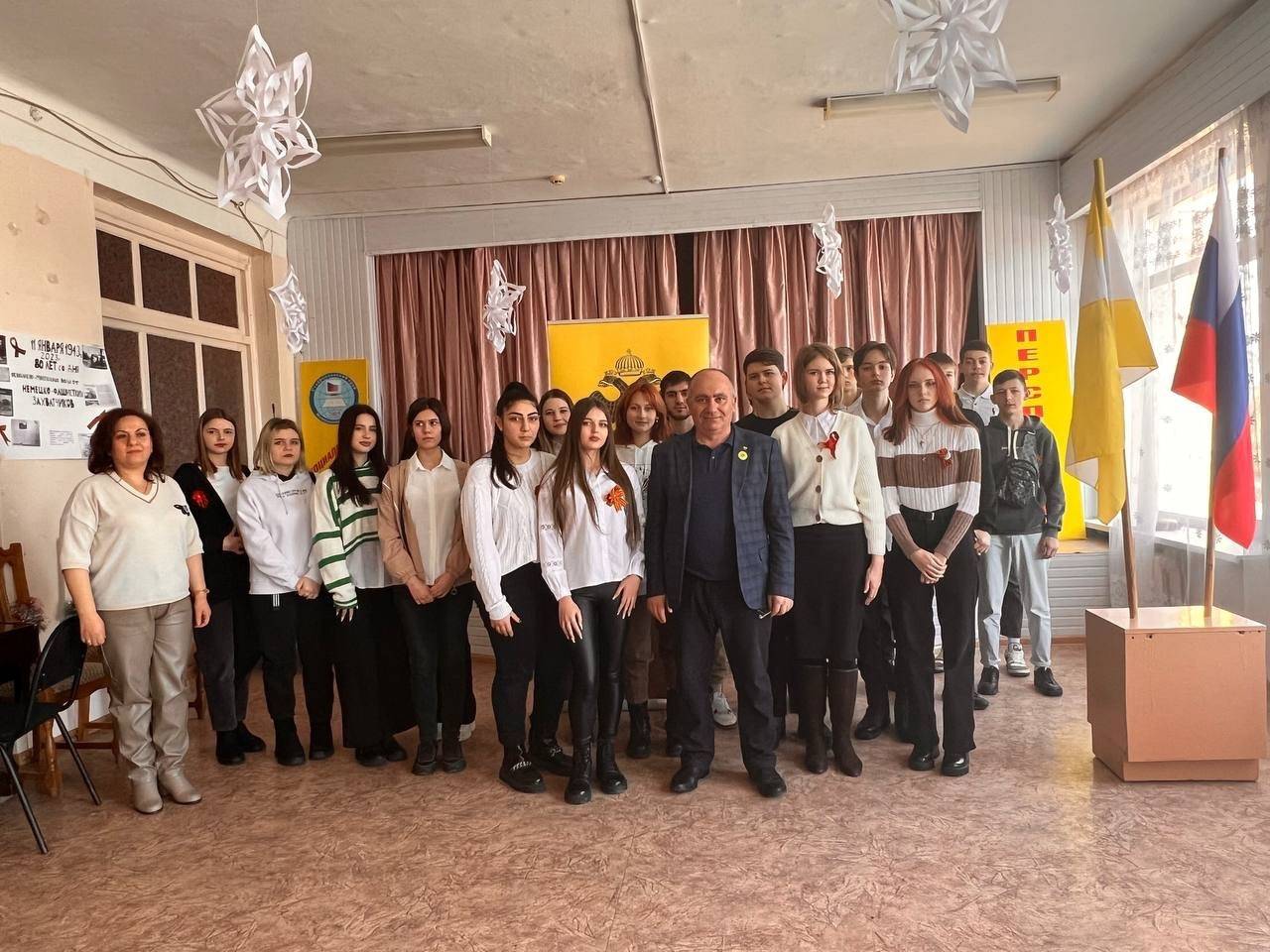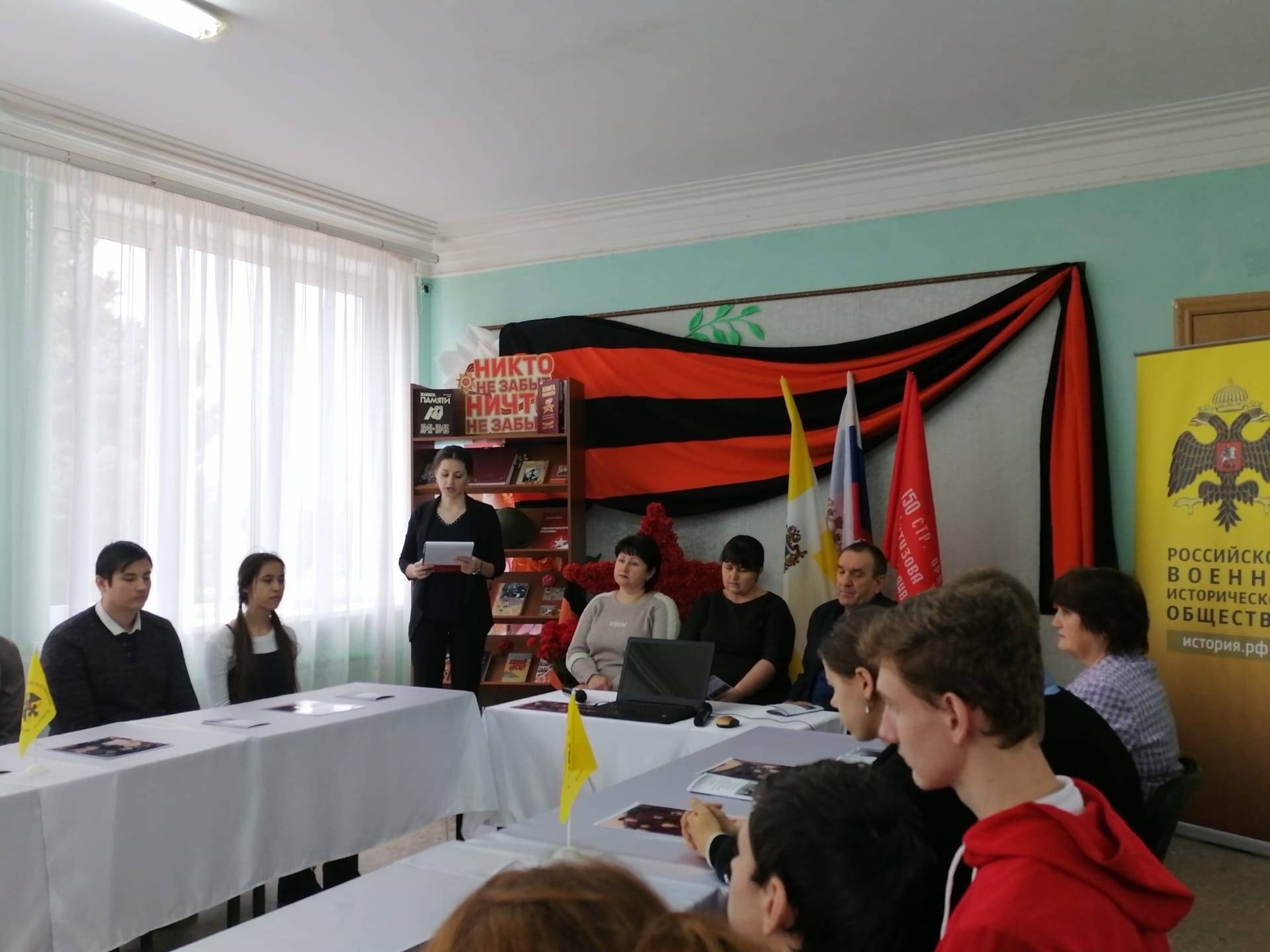 16 января 2023 г. в МКУ «Центр культуры, досуга и спорта» с. Родниковского Арзгирского муниципального округа членами Местного отделения РО РВИО СК (председатель – Н.Н. Новак) был организован исторический час «Героическое Ставрополье», на который были приглашены представители администрации села, а также учащиеся и педагоги МКОУ СОШ №9 с. Родниковского. С приветственным словом к учащимся обратился исполняющий обязанности начальника территориального отдела в с. Родниковском, член РО РВИО СК – В.А. Иващенко. Он отметил значимость памяти и популяризации героических подвигов народа среди молодежи, осознания цены общей Победы и освобождения Ставрополья. Затаив дыхание, ребята слушали воспоминания их земляков – детей войны о том времени, когда в родном селе находились фашисты. В ходе мероприятия учащиеся и их педагоги познакомились с книжной выставкой «Никто не забыт, ничто не забыто», которую представила Н.П. Никифорова, библиотекарь Центра культуры, досуга и спорта, член РО РВИО СК. На выставке были представлены биографические сборники о Героях Советского Союза, выпущенные РО РВИО СК.
