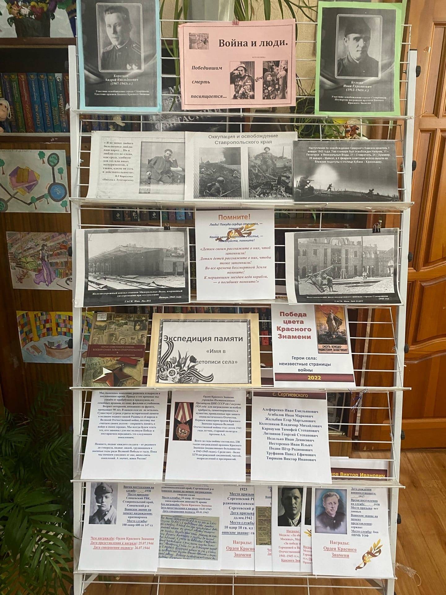 13 января 2023 г. на базе Сергиевской сельской библиотеки представители РО РВИО СК провели тематическое мероприятие для учащихся МКОУ СОШ №5 с. Сергиевского Грачевского муниципального округа Ставропольского края. Жалыбина Г.М., библиотекарь, член РО РВИО СК, рассказала школьникам об истории оккупации края и Грачевского района, о героях, освобождавших краевую столицу – г. Ставрополь. Особое внимание было уделено юным героям-антифашистам, которые, несмотря на свой возраст, противостояли немецко-фашистским захватчикам: Жене Алферову, Володе Гайдаю, Пете Слезавину, Сереже Попову, Саше Скокову. Описания подвигов пионеров глубоко затронули школьников, так как они были их ровесниками. В ходе мероприятия учащиеся ознакомились с материалами двух литературных выставок «Ставрополье в годы войны», «Война и люди», на которых представлены: литература об освобождении Ставропольского края от немецко-фашистских захватчиков, о героях-ставропольцах, статьи из периодических изданий, фотографии, рассказы очевидцев.