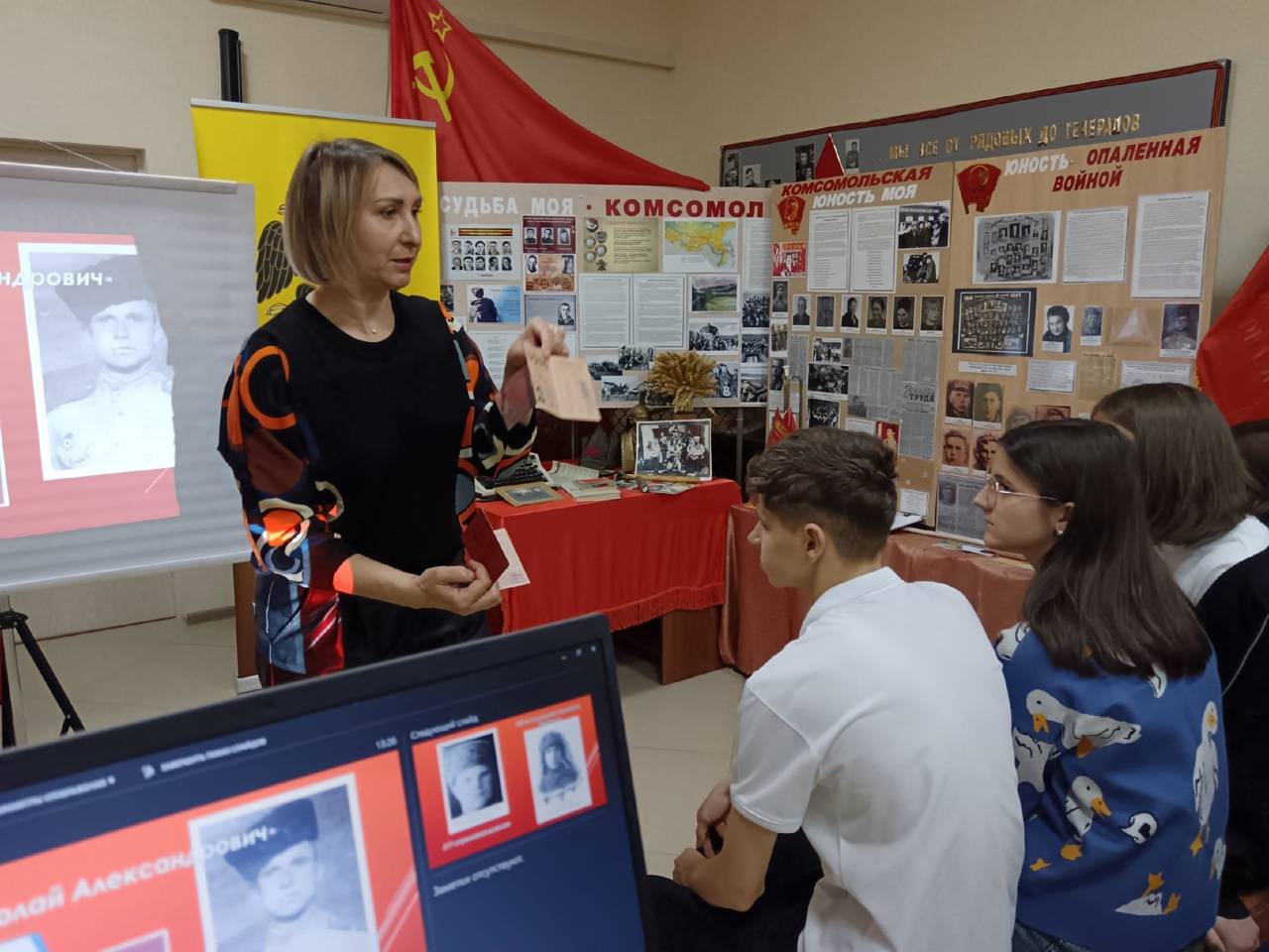 30 октября 2025 года сотрудники Новоалександровского районного историко-краеведческого музея, члены РО РВИО СК Герасимова М.Ф. и Скрипникова Л.А. организовали мероприятие «Наши земляки – новоалександровцы на фронтах Великой Отечественной войны и участники боевых действий». Школьники познакомились с историей ВЛКСМ, узнали о выдающихся представителях организации. Особое внимание было уделено участию земляков-комсомольцев в Великой Отечественной войне, Афганской войне и локальных конфликтах. В рамках мероприятия учащиеся смогли ознакомиться с музейной выставкой «Это юность моя – комсомол!», на которой представлены фотографии и личные вещи комсомольцев разных лет.