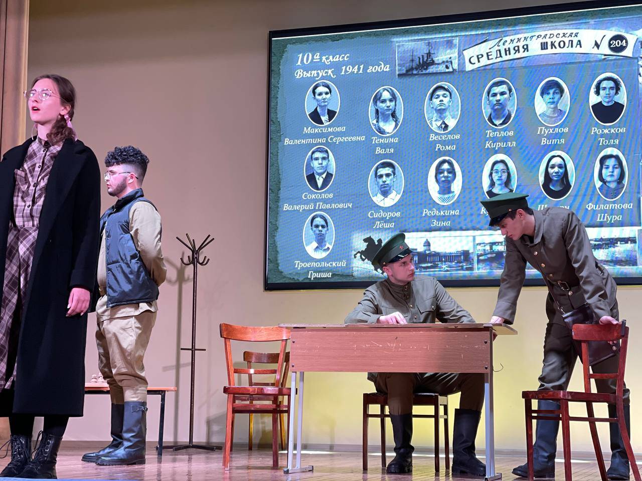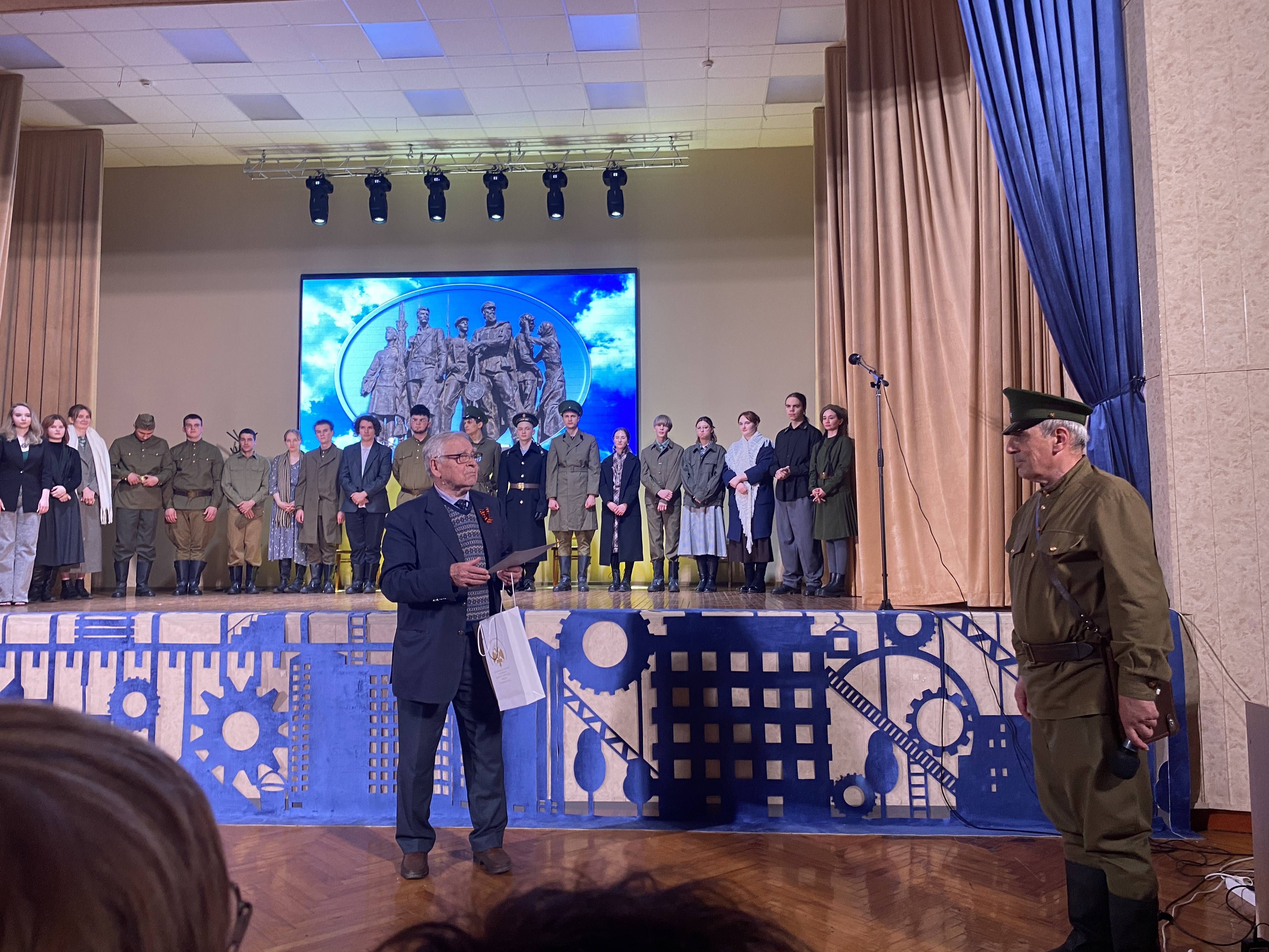 Юсупова Ю.А., социальный педагог ССТ, член РО РВИО СК, представила историю возникновения идейного замысла спектакля. Постановка посвящена 80-летию полного освобождения Ленинграда от фашистской блокады и памяти участника Великой Отечественной войны, блокадника, заслуженного деятеля культуры России, патриарха музейного дела на Ставрополье, почётного гражданина Ставрополя Госданкера Вениамина Вениаминовича.