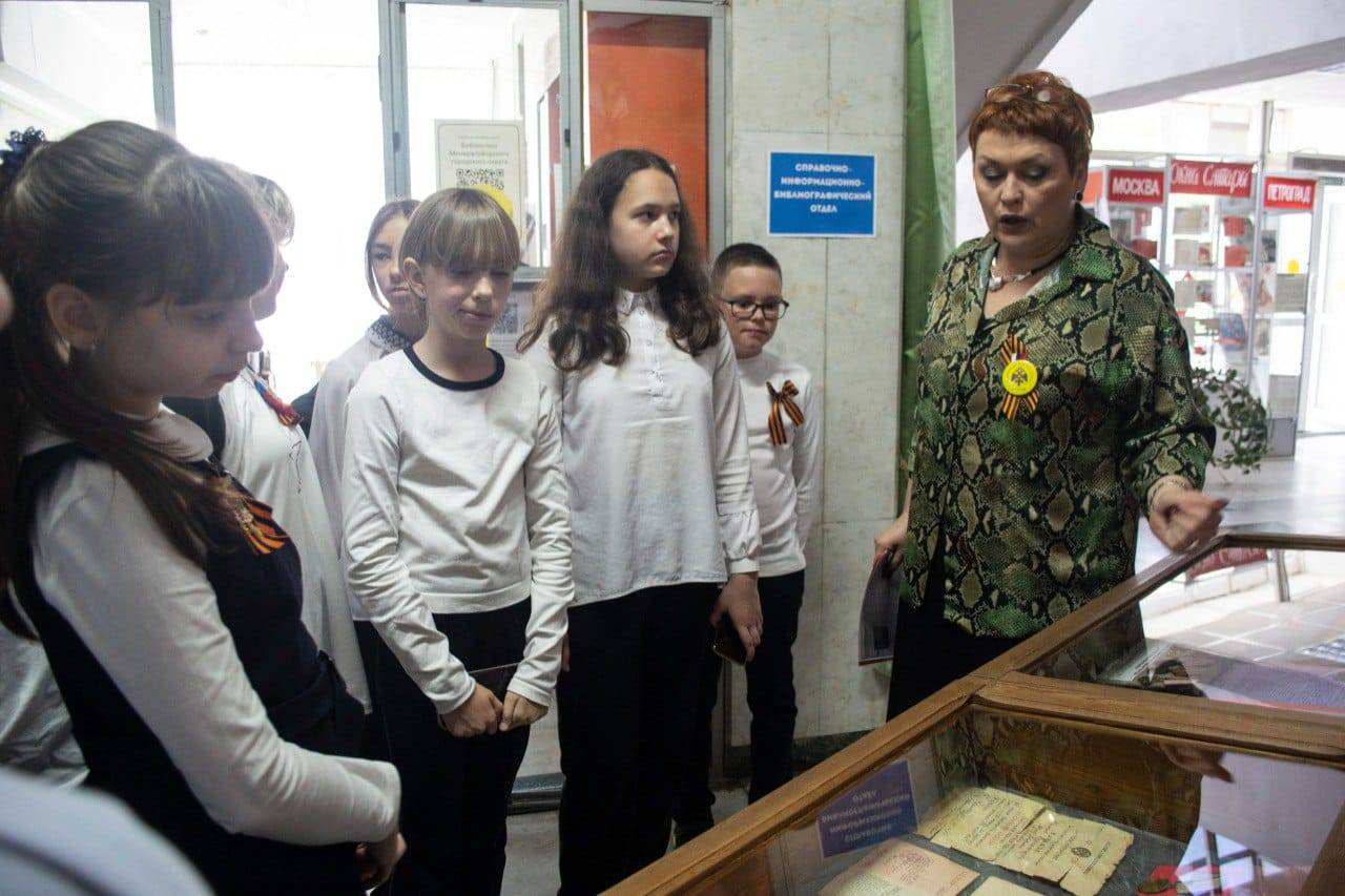 В преддверии праздника Гаркуша Е.А., зав. отделом краеведения Центральной городской библиотеки им. Р.Н. Котовской, член Местного отделения РО РВИО СК в Минераловодском муниципальном округе (председатель – Акопян М.Б.) провела для учащихся МБОУ СОШ №20 г. Минеральные Воды виртуальную экскурсию «Маршрут памяти». Школьники узнали истории возникновения памятников, посвященных Великой Отечественной войне, на территории города, участии земляков в военных событиях, оккупации и освобождении родного города. Они также поделились семейными историями о своих родственниках – участниках Великой Отечественной войны. В завершении мероприятия учащиеся ознакомились с тематическими выставками.