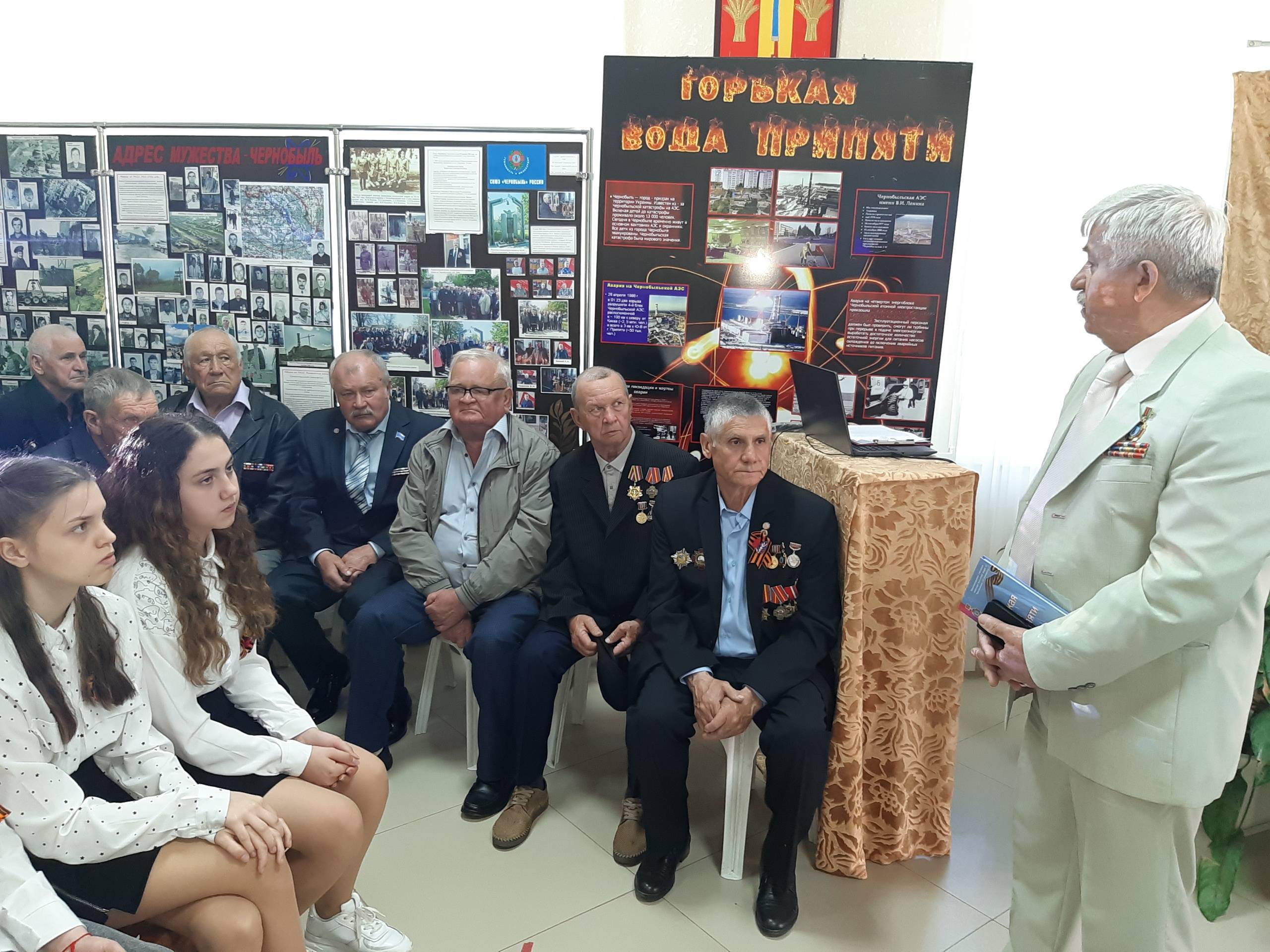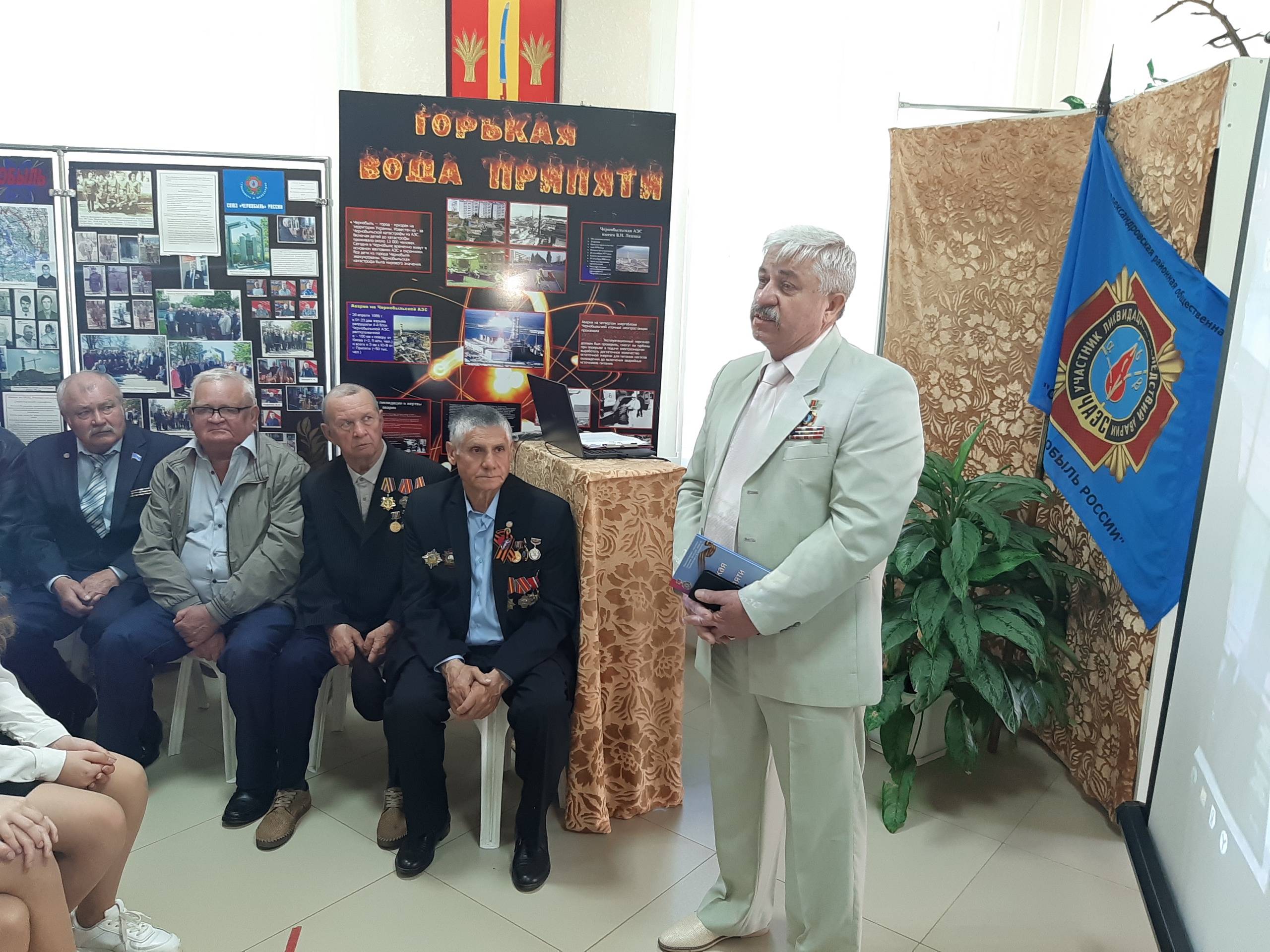 Сотрудники музея, члены РО РВИО СК Герасимова М.Ф. и Скрипникова Л.А. рассказали школьникам и гостям об истории аварии на Чернобыльской АЭС, перевернувшей мировую историю, показали тематические видеоролики, раскрывающие причины и последствия атомной катастрофы 26 апреля 1986 года. В музее была подготовлена выставка «Горькая вода Припяти», на которой представлены документальные свидетельства трагедии, фотографии атомного реактора и этапы ликвидационных работ, в которых принимали участие и новоалександровцы, гости мероприятия. Все собравшиеся почтили память тех земляков, кого уже нет в живых и услышать гимн всех «чернобыльцев».
