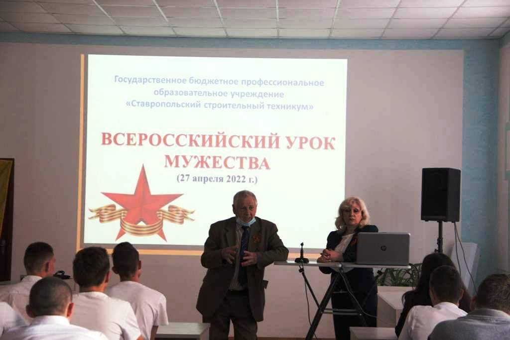 27 апреля 2022 г. в конференц-зале Государственного бюджетного профессионального образовательного учреждения «Ставропольский строительный техникум» (ССТ) прошёл Урок Мужества, приуроченный ко Дню торжественной церемонии награждения лауреатов Всероссийской общественно-государственной инициативы «Горячее сердце».