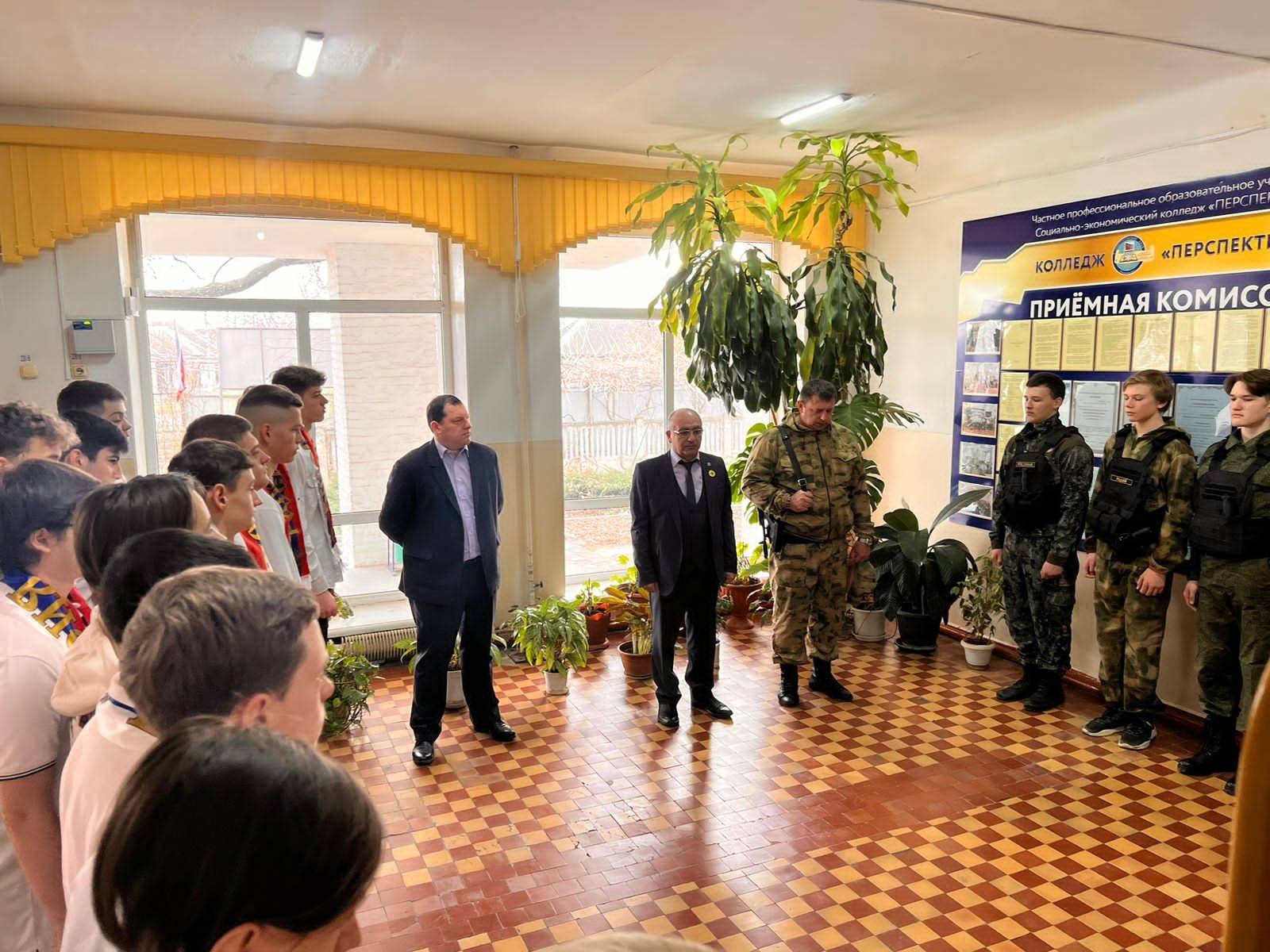 20 февраля 2023 года на базе ЧПОУ «Социально-экономический колледж «Перспектива» состоялась торжественная встреча, приуроченная ко Дню защитника Отечества. Активное участие в мероприятии приняли активисты Регионального отделения Российского военно-исторического общества в Ставропольском крае (РО РВИО СК) под руководством М.Б. Акопяна. Почетными гостями встречи стали ветераны боевых действий, участники различных военных конфликтов.
