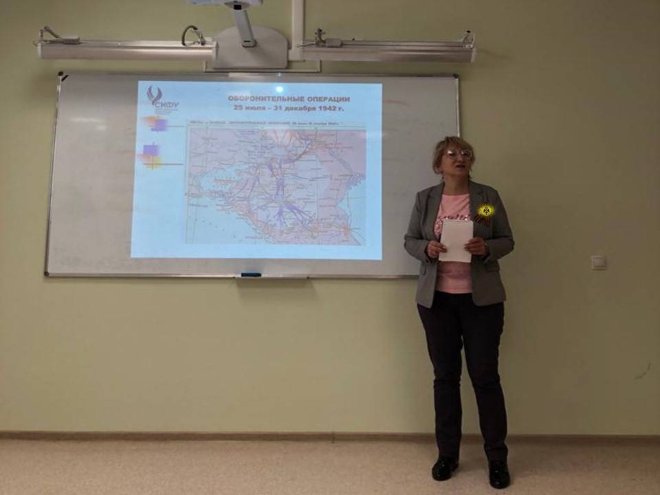 27 апреля 2022 года на базе Северо-Кавказского федерального университета (СКФУ) состоялся традиционный цикл лекций «Исторические чтения» на тему «Героический подвиг северокавказских народов в Битве за Кавказ». С докладами выступили представители Ставропольского регионального отделения Российского военно-исторического общества (РО РВИО СК) – Н.Д. Судавцов и Е.Н. Стрекалова. Цикл лекций приурочен к 77-ой годовщине Победы в Великой Отечественной войне.