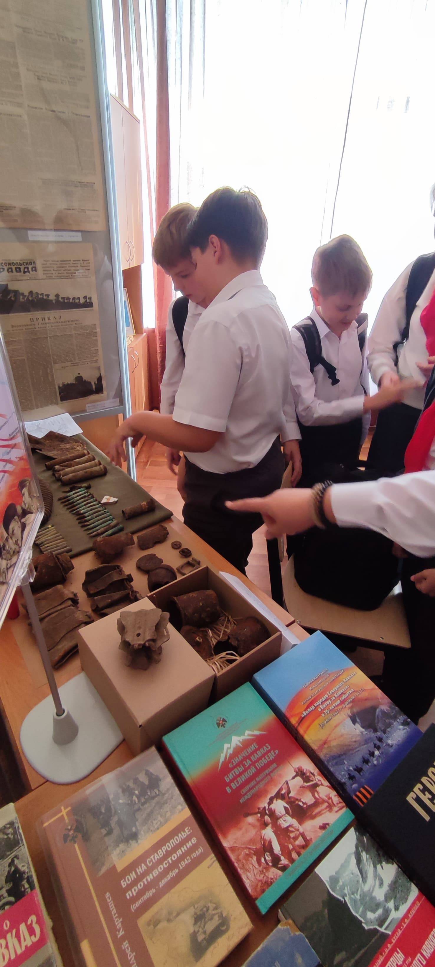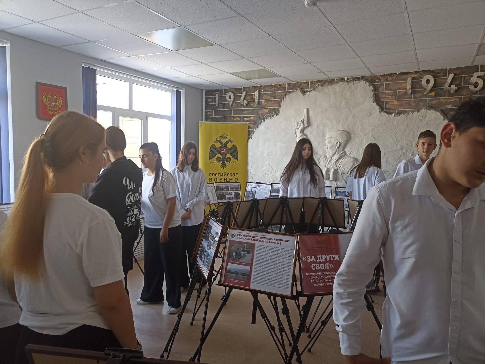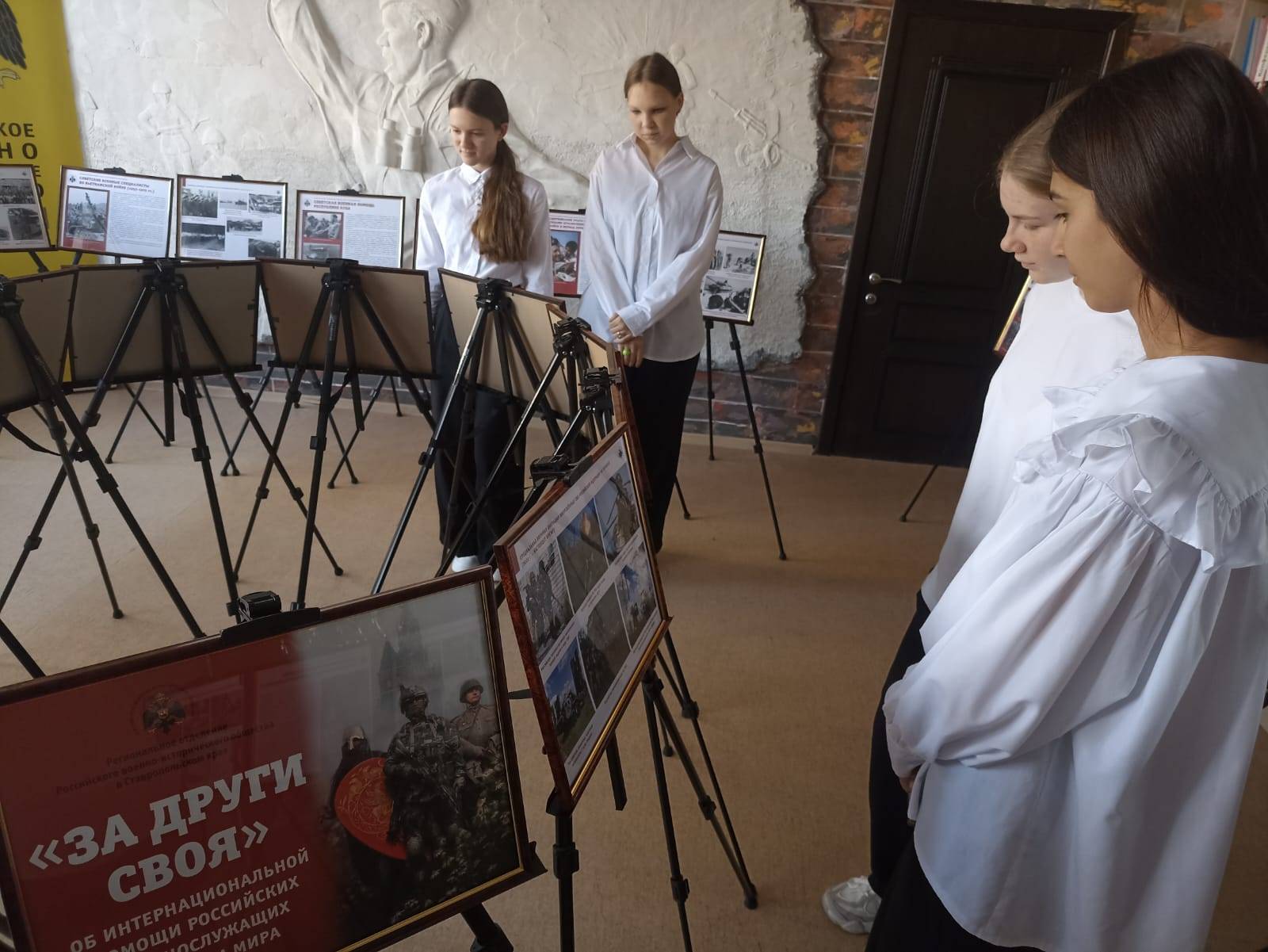 На регулярной основе в рамках проектной деятельности при поддержке Министерства молодёжной политики Ставропольского края реализуются передвижные выставочные проекты. Так, в 2024 г. была подготовлена выставка «За други своя», рассказывающая об интернациональной помощи российских военнослужащих народам мира на протяжении длительного периода истории. С начала учебного года данный проект был презентован на площадках нескольких школ г. Ставрополя – МБОУ СОШ №7 и МБОУ СОШ №28. Выставку уже посмотрело более 2300 школьников.