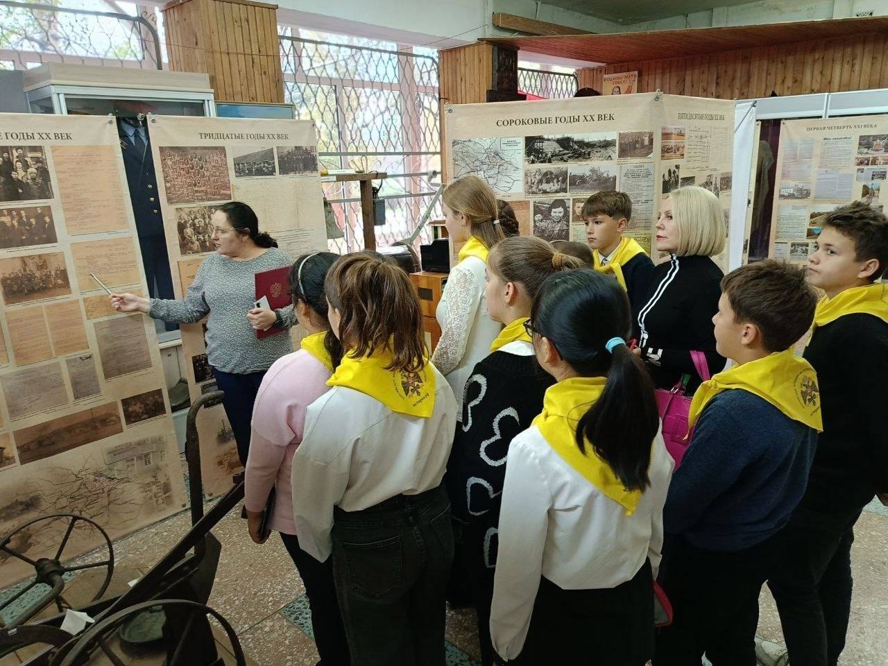 Представители Местного отделения РО РВИО СК в Изобильненском муниципальном округе (председатель – Щендригин Н.И.) организовали для членов клуба «Юный патриот» РО РВИО СК экскурсию по выставке «Дорога длиною в 100 лет», посвященной 100-летию образования Изобильненского муниципального округа. Экскурсия прошла под руководством начальника Архивного отдела администрации Изобильненского муниципального округа, члена РО РВИО СК Севостьяновой М.В. В экспозиции выставки представлены образы документов из фондов Государственного архива Ставропольского края и Архивного отдела администрации Изобильненского муниципального округа. Иллюстрацией к ним являются фотографии из фондов ГБУК СК «Музей истории Изобильненского района» и личных архивов изобильненцев. Материалы, представленные в экспозиции, отражают историю становления и развития округа на протяжении века, рассказывают о повседневной жизни и трудовых свершениях нескольких поколений жителей округа.