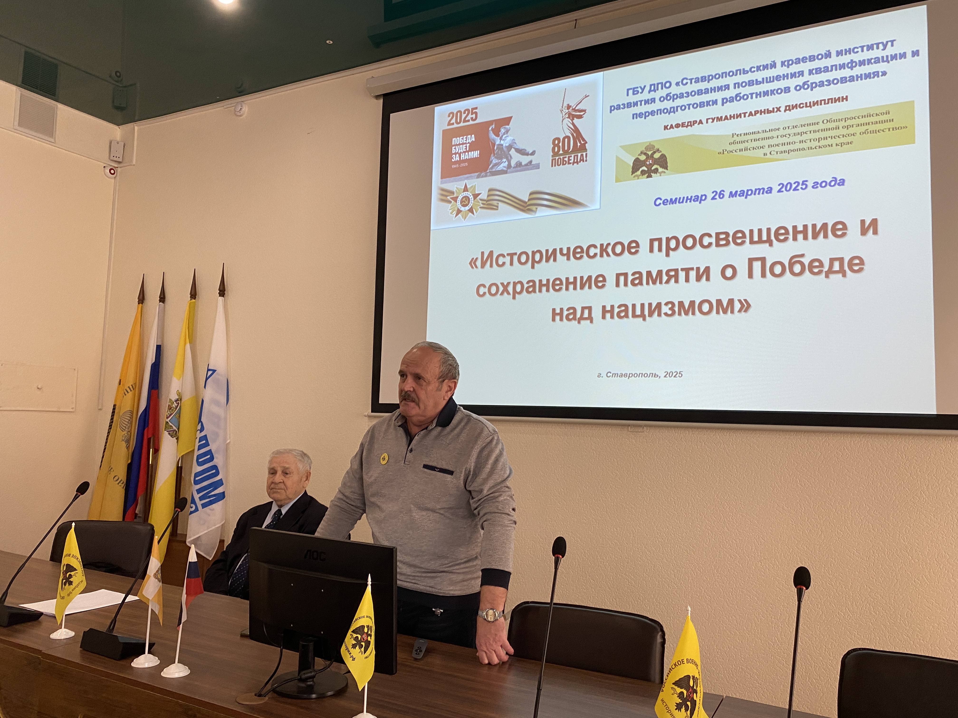 26 марта 2025 года в конференц-зале Регионального отделения Российского военно-исторического общества в Ставропольском крае (РО РВИО СК) состоялся методический семинар «Историческое просвещение и сохранение памяти о Победе над нацизмом».