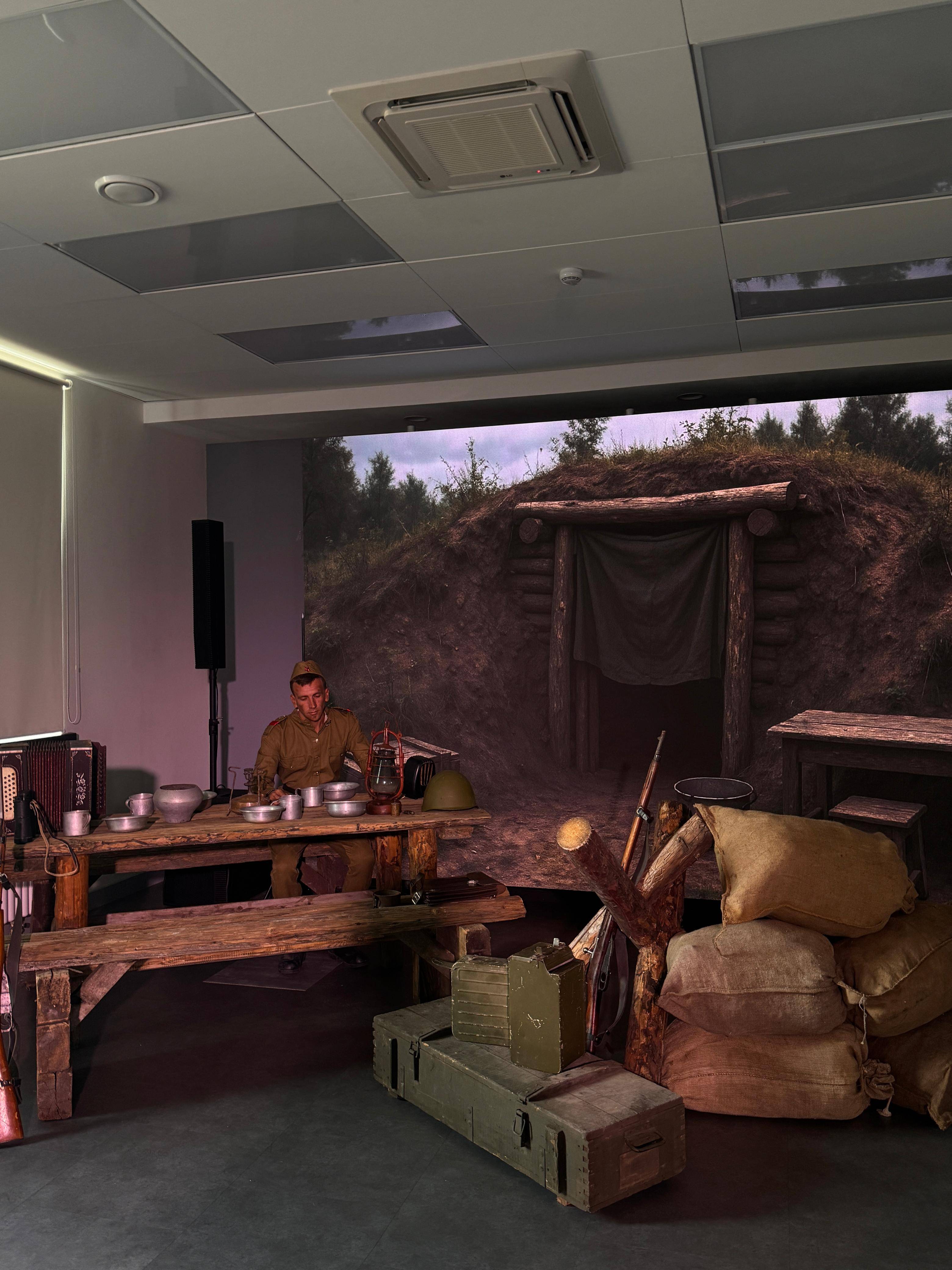 Особый интерес вызвали мероприятия, прошедшие 22–23 июня 2025 г. в Центре знаний «Машук» в рамках Дня памяти и скорби. Посетители смогли погрузиться в атмосферу военных лет благодаря иммерсивному спектаклю, в котором были использованы экспозиции «Полевая почта», «Школьный класс», «Завод по производству снарядов», «Блиндаж» и другие.