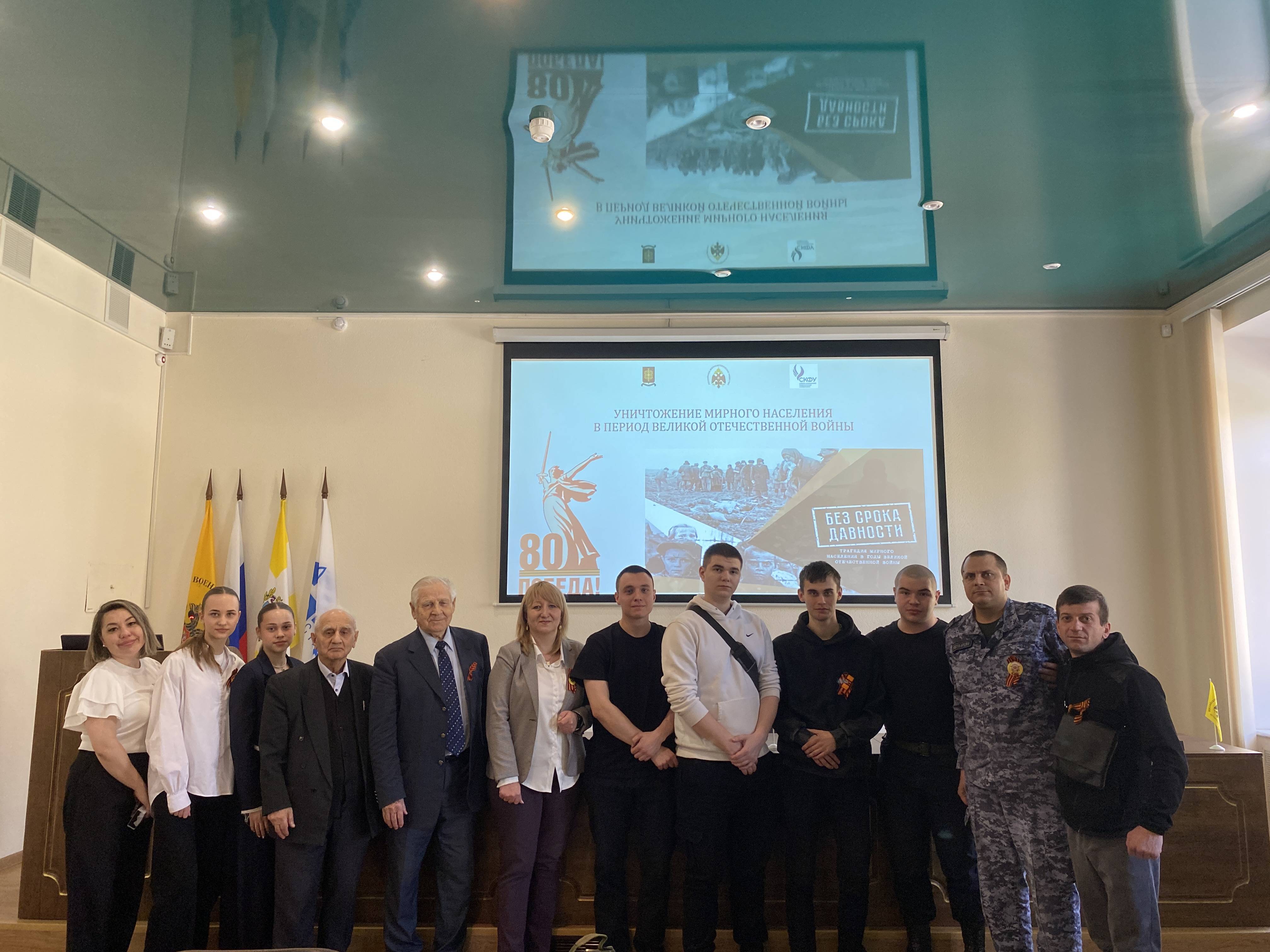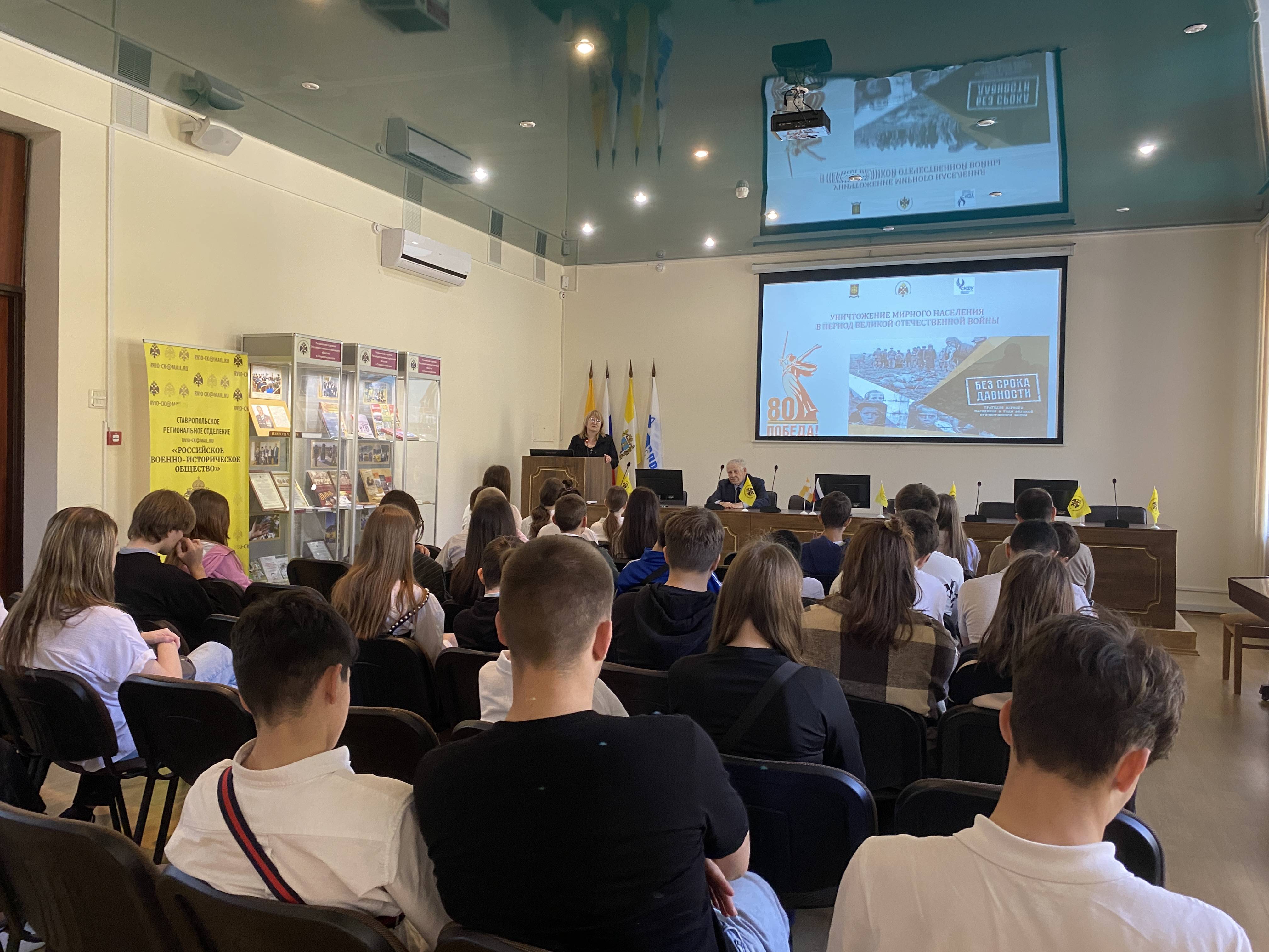 17 апреля 2025 года в конференц-зале Регионального отделения Российского военно-исторического общества в Ставропольском крае (РО РВИО СК) состоялось заседание клуба «Юный патриот» РО РВИО СК в формате киносеанса «История РФ. Смотрим и обсуждаем вместе». Тема апрельской встречи – «Уничтожение мирного населения в период Великой Отечественной войны».